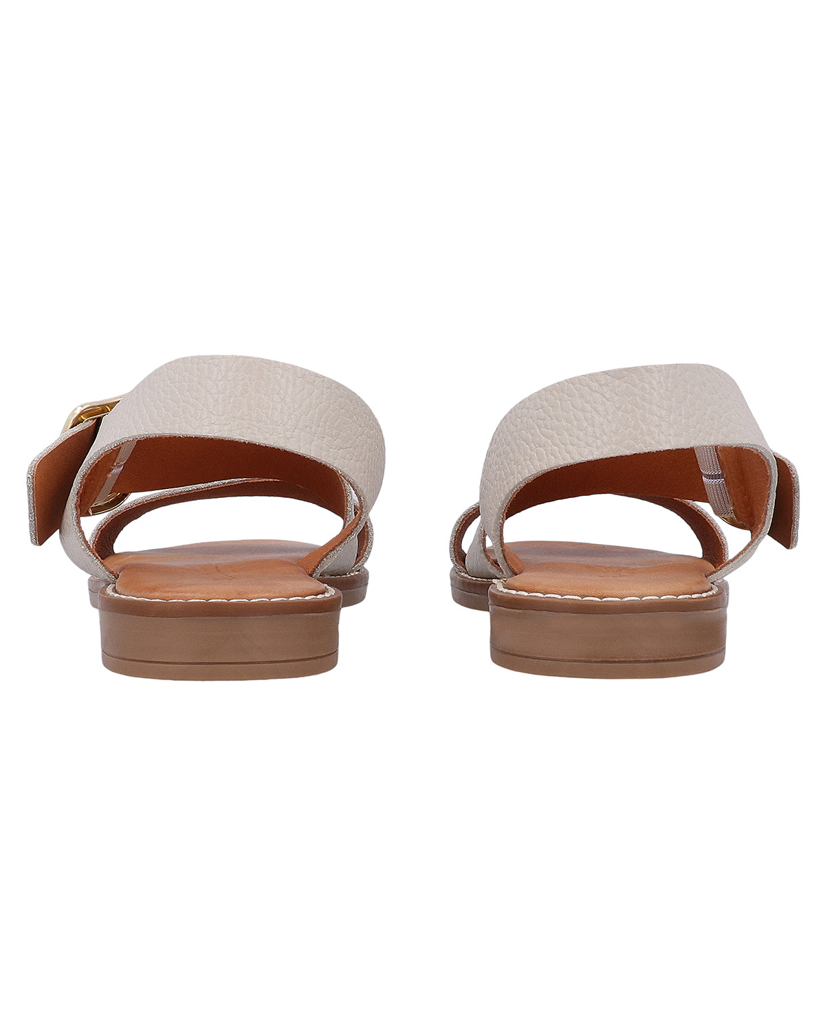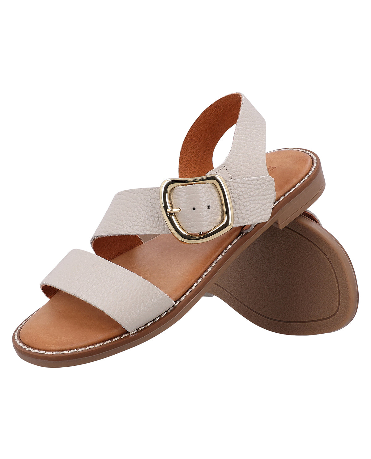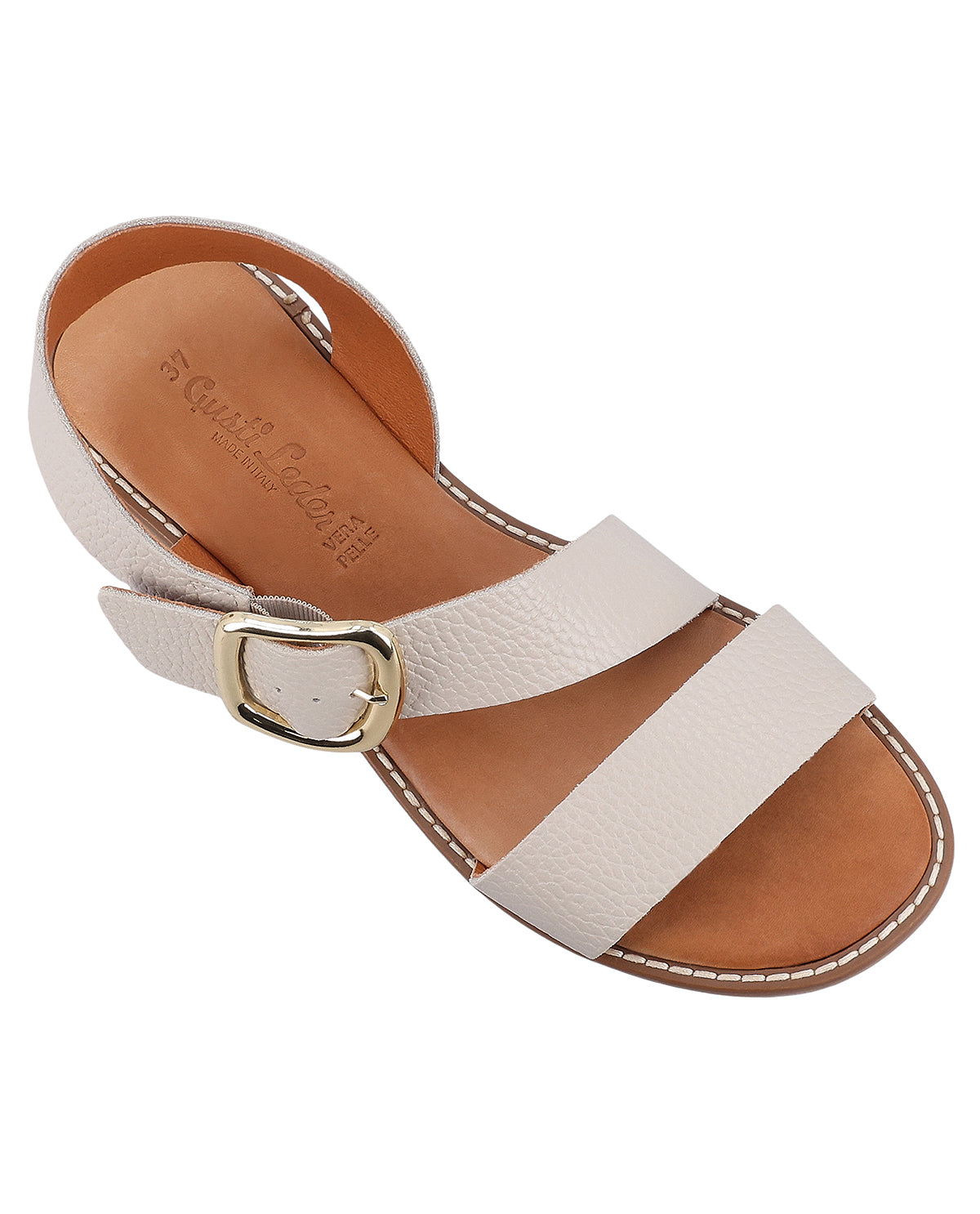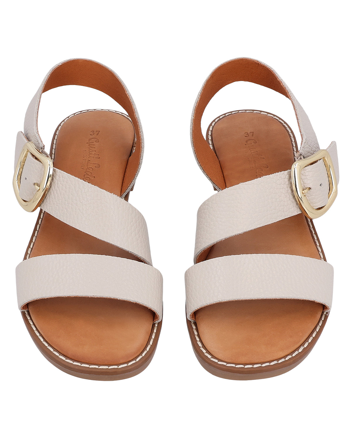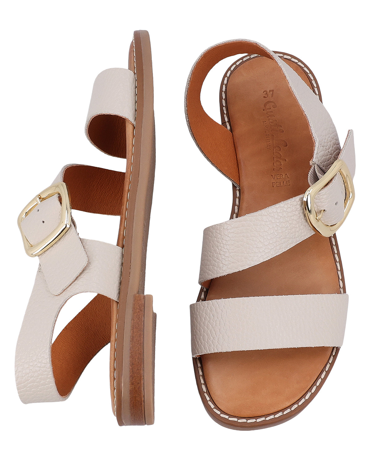 Leder-Sandale mit beigen Riemen und verstellbarer Schnalle