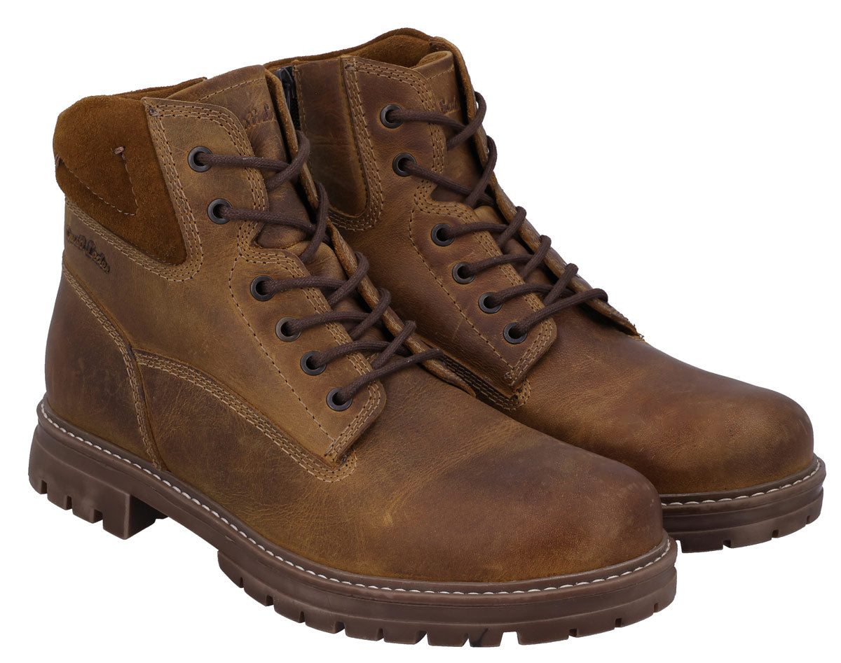 Mit "Falco" bist Du bestens für die kalte Jahreszeit gerüstet. Diese hochwertigen Winterschuhe aus feinstem Rindsleder überzeugen durch ihre robuste Verarbeitung und ihren modernen Look. Das klassische Schnürdesign mit stabilen Metallösen bietet sicheren Halt, während der seitliche Reißverschluss das An- und Ausziehen besonders bequem macht. Die doppelte Nahtführung und die verstärkte Ferse sorgen für zusätzliche Stabilität und Langlebigkeit. Der weich gepolsterte Schaft schmiegt sich angenehm an Dein Bein und verhindert Druckstellen – perfekt für lange Wintertage voller Bewegung.