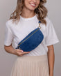 Belt bag bumbag crossbody bag leather bag women blue leather - Made in Italy