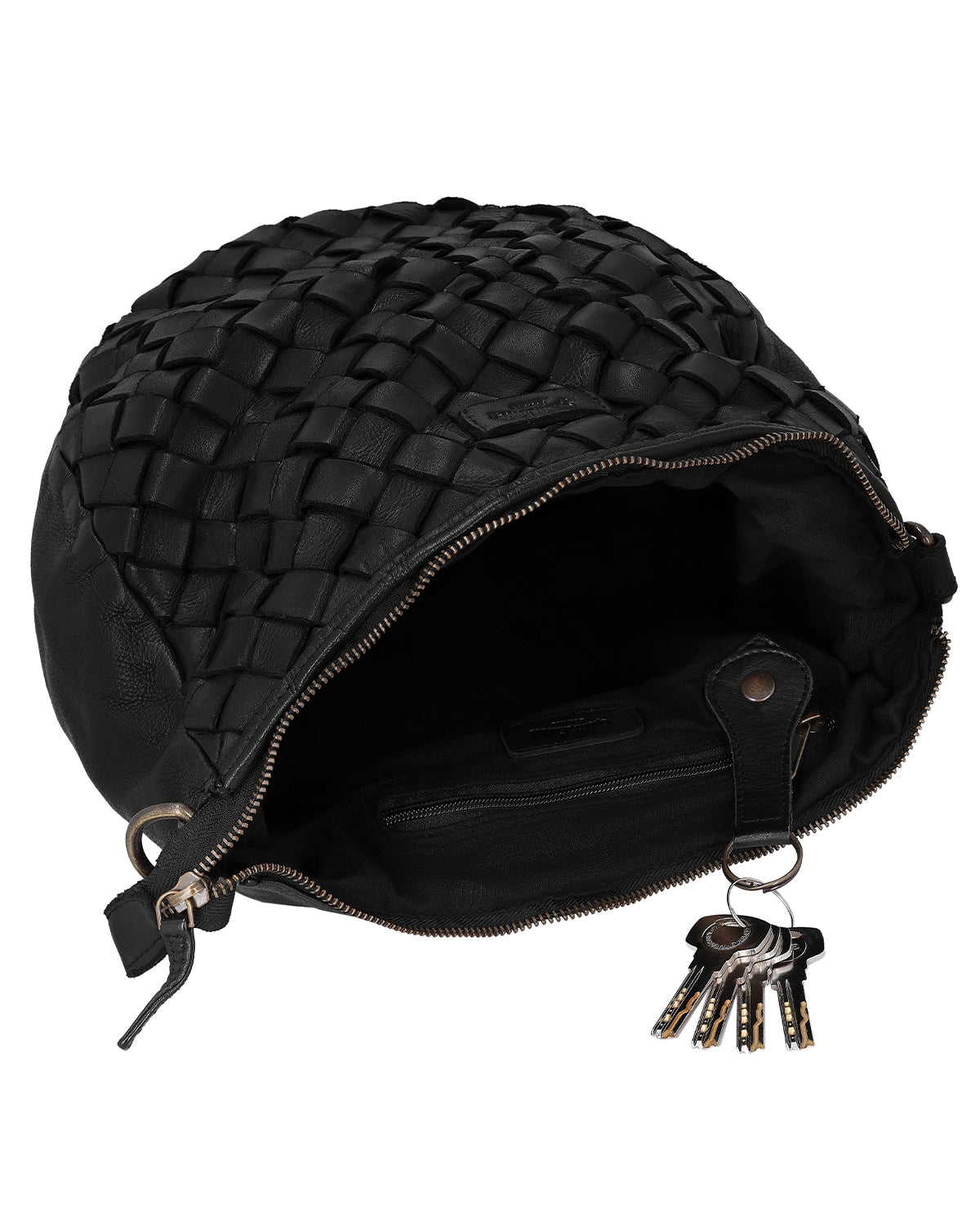"Clover" immediately catches the eye with its sturdy cowhide leather and coarse woven design. One main compartment has a capacity of 8 liters, which is enough space for small notebooks, keys, wallet, lipstick, and cell phone . A practical key ring holder is integrated so you don't have to search for your keys. For extra security on the go, "Clover" also has a secret AirTag compartment so you can find your bag more easily at any time. The all-around zipper protects your belongings from falling out. Now quickly sling it over your shoulder and off you go. Whether you're heading out into nature or into the hustle and bustle of the city, "Clover" comes with you. The design is rounded off by a Gusti logo patch and an integrated engraving patch that shows off your personalization to its best advantage.