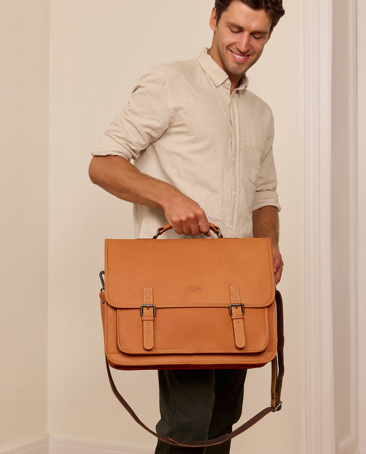 Please note: You can use a total of 30 characters, max. 15 per line. The exact colour of the engraving may vary slightly depending on the product and leather. The white text that you can see in the preview is solely for visibility and contrast, so you can better imagine how your engraving will look. If you only see a patch in the preview, the text of your choice will be engraved on a leather patch that will be sewn inside the bag. If you see the product in the preview, the engraving is positioned as shown in the preview image.
