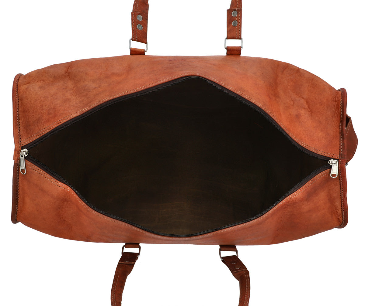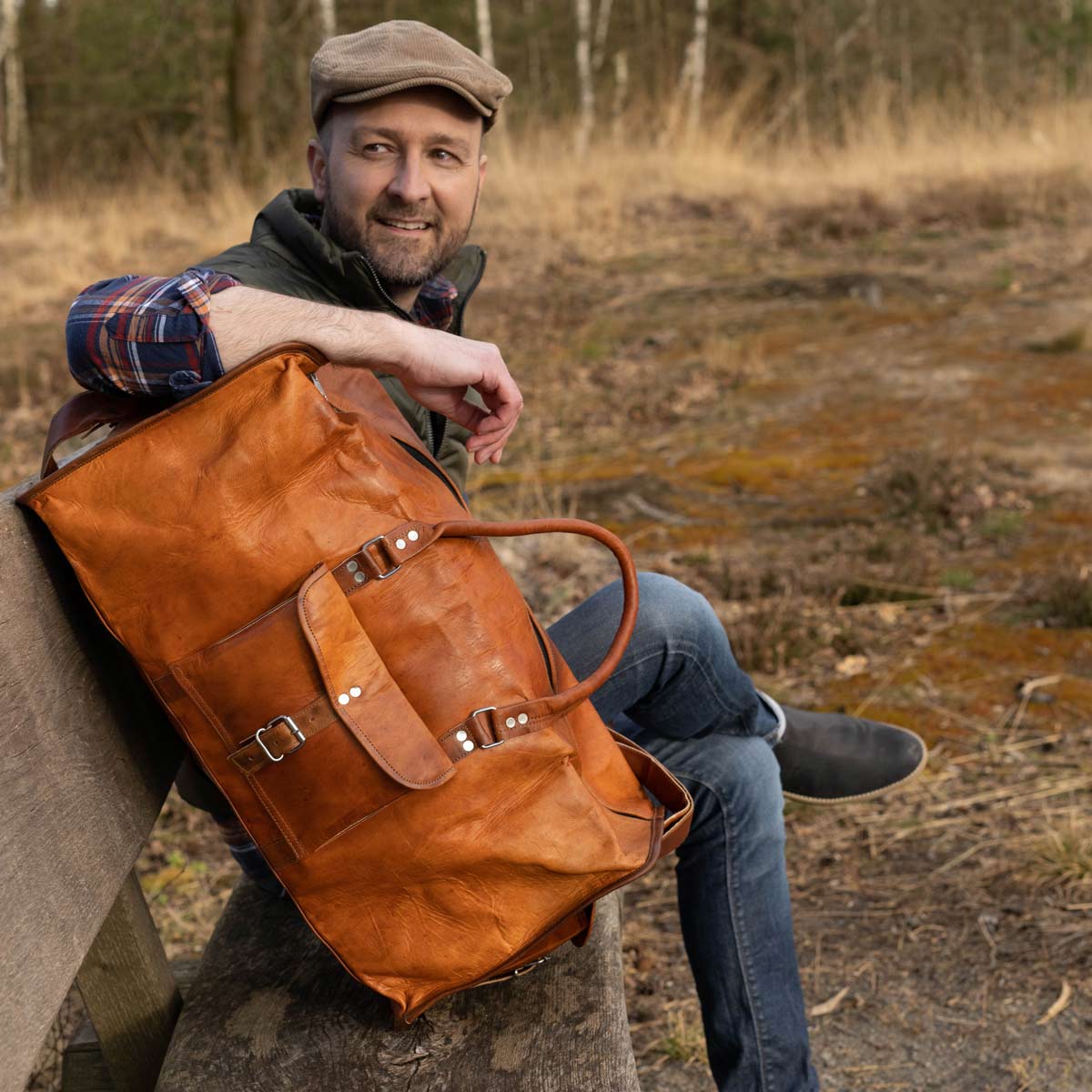 This vegetable-tanned goatskin leather cabin bag will impress you with its striking classic compact design, comfortable straps, and spacious compartments. There's plenty of space for your clothes and two pairs of shoes in the main compartment, as well as your toiletry bag and current read—there's even space for a notebook or folder. Keep your valuables safe in the additional zipped internal pocket. There's an extra external pocket on the front of the bag that you can use to store your keys, tissues, emergency medication and much more. Secure your belongings in “Oscar” using the charming vintage buckle. Your things are kept safe in the bag's main compartment by a zip.