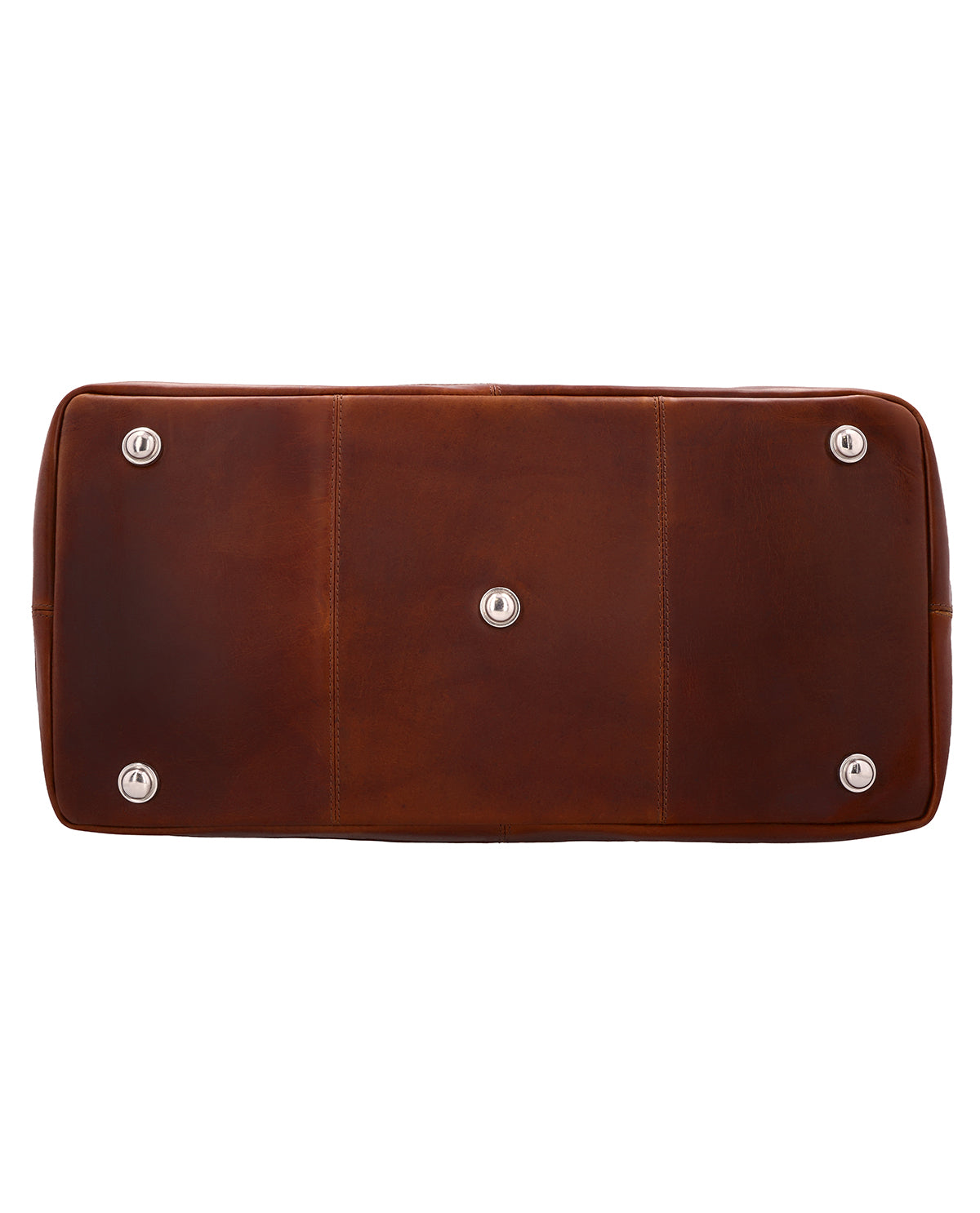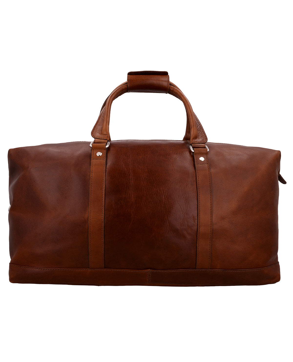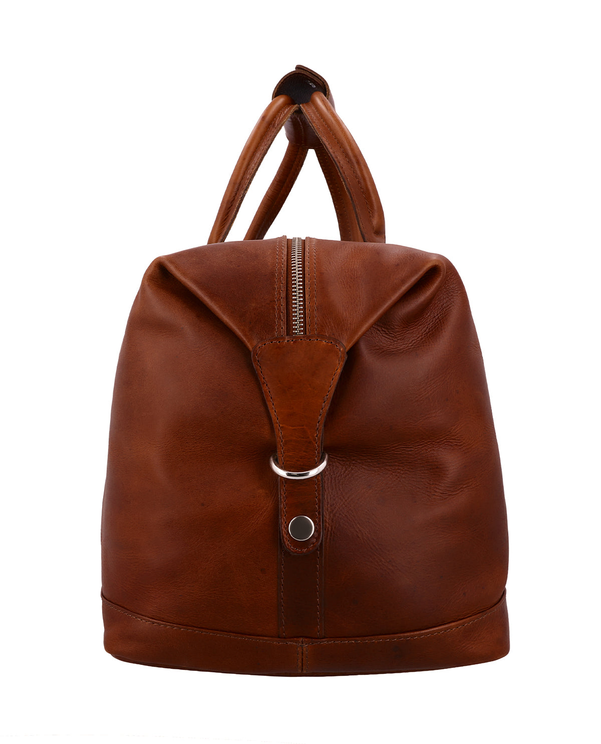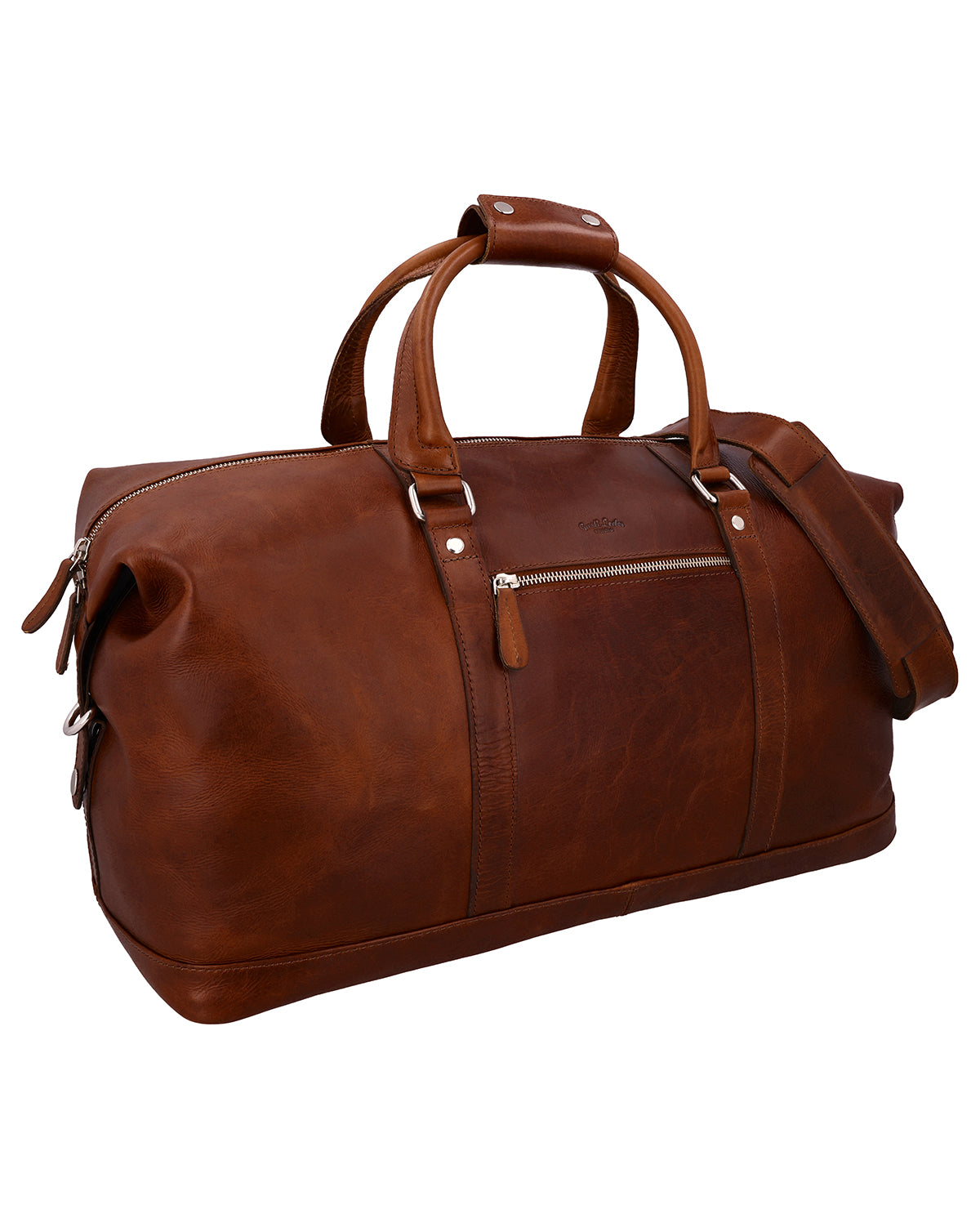 A stylish leather travel bag with a water-resistant lining and plenty of space