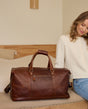 A stylish leather travel bag with a water-resistant lining and plenty of space