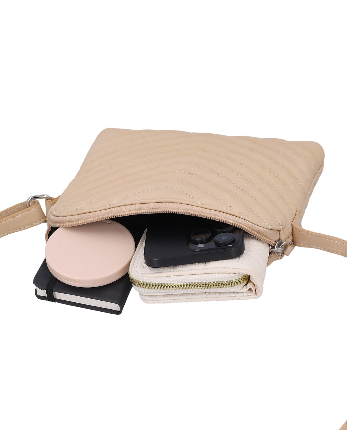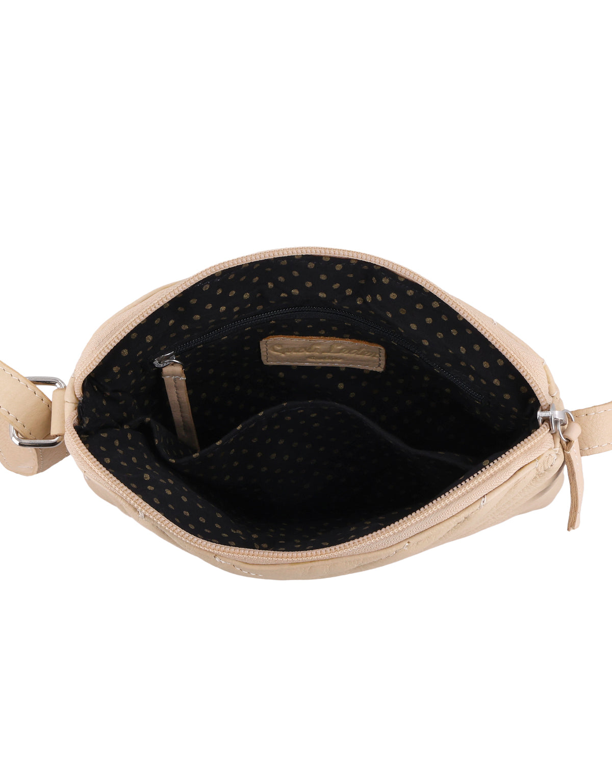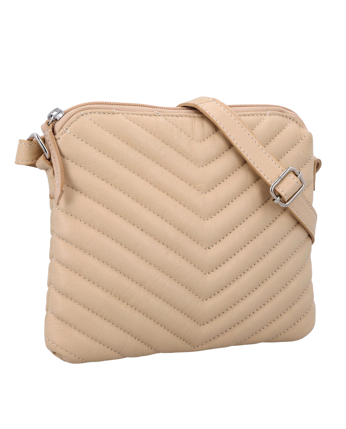 The small "Aline" handbag is a leather handbag for women who want to consciously integrate color and texture into their everyday lives. The beige leather has a lively look and the striking pattern on the surface makes it a special eye-catcher that immediately adds lightness to your outfit. Despite its compact size, "Aline" offers exactly the flexibility you need in everyday life thanks to its zippered main compartment and adjustable shoulder strap. This leather shoulder bag accompanies you through the day with ease, making a clear, positive style statement.