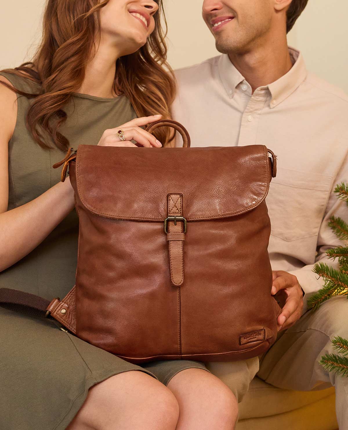 “Kieran” won’t just charm you with its high-quality full-grain leather look, but with his ingenious design too. This 100% leather backpack has more than enough space for all of your essentials and is super comfortable to wear, thanks to its wide full-grain leather straps. The main compartment has a double fastening system; the long zip and thorn-buckle-style snap lock make sure everything stays safe and secure. The extra zipped pocket on the back of the bag provides you with space to keep your valuables hidden and safe from sticky fingers. Add a timeless touch to your wardrobe with “Kieran”.