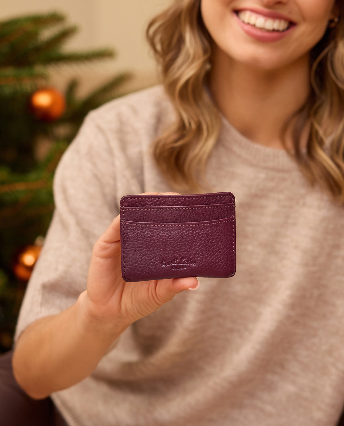 The "Qani" card case is the perfect choice for anyone who values organization and elegance. Made from high-quality purple leather, it impresses with its compact size and elegant design. The noble color and fine craftsmanship make it a stylish accessory that is not only functional but also a real eye-catcher. With this card case, you always have everything important with you – and in the best quality.