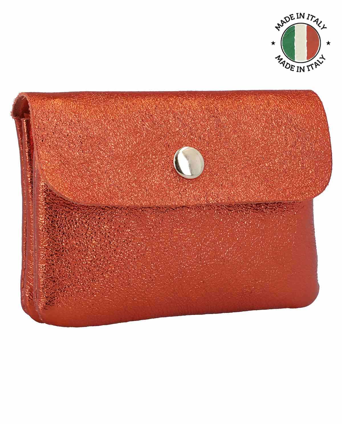 Storage bag wallet purse organiser women shiny brown leather - Made in Italy