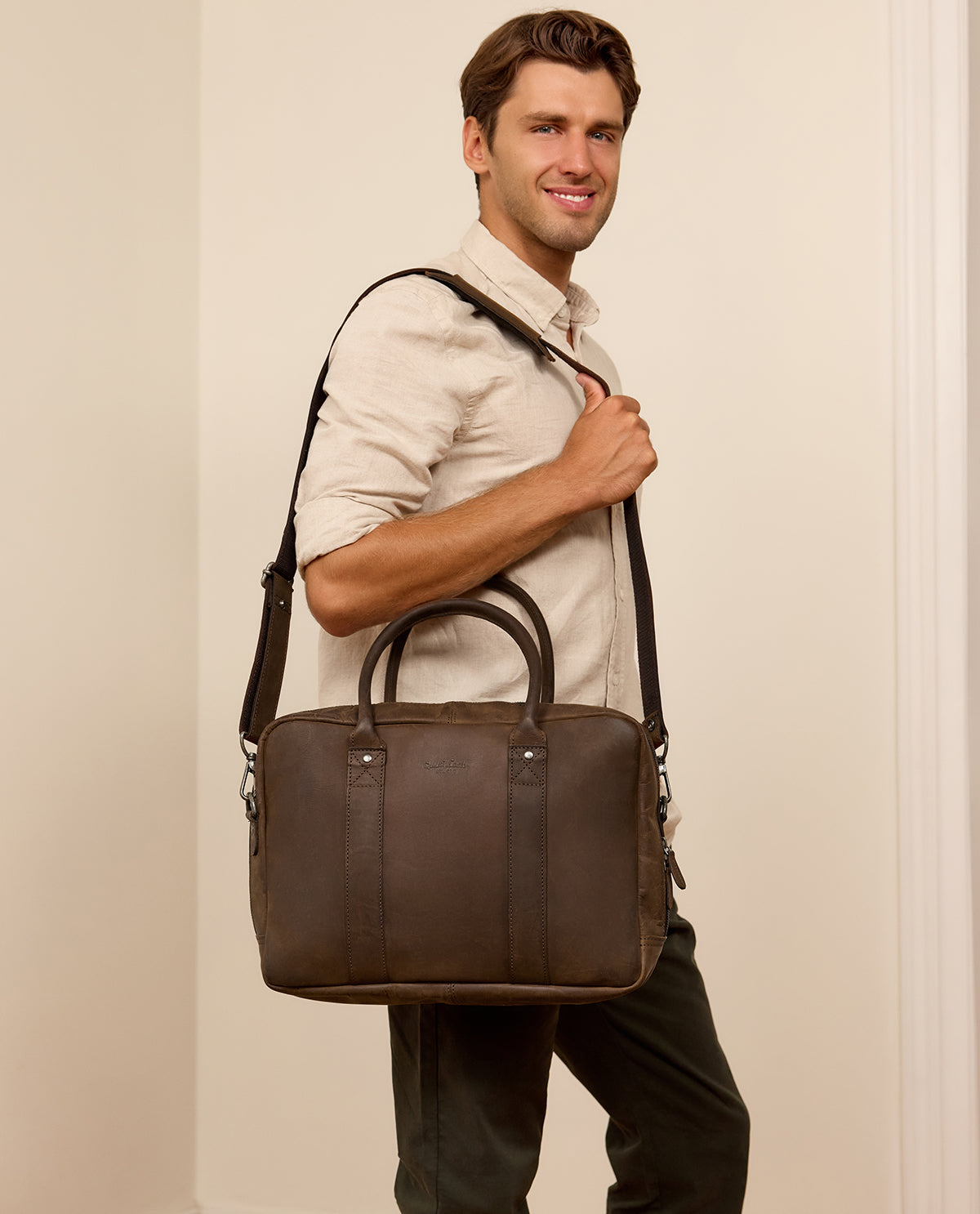 The spacious main compartment has space for your laptop, documents, and other essentials, and there are smaller compartments that help you keep everything organised. The adjustable shoulder strap and sturdy handles mean you can carry this briefcase comfortably however you want. The premium craftsmanship ensures durability and resilience, making this bag a long-lasting companion.