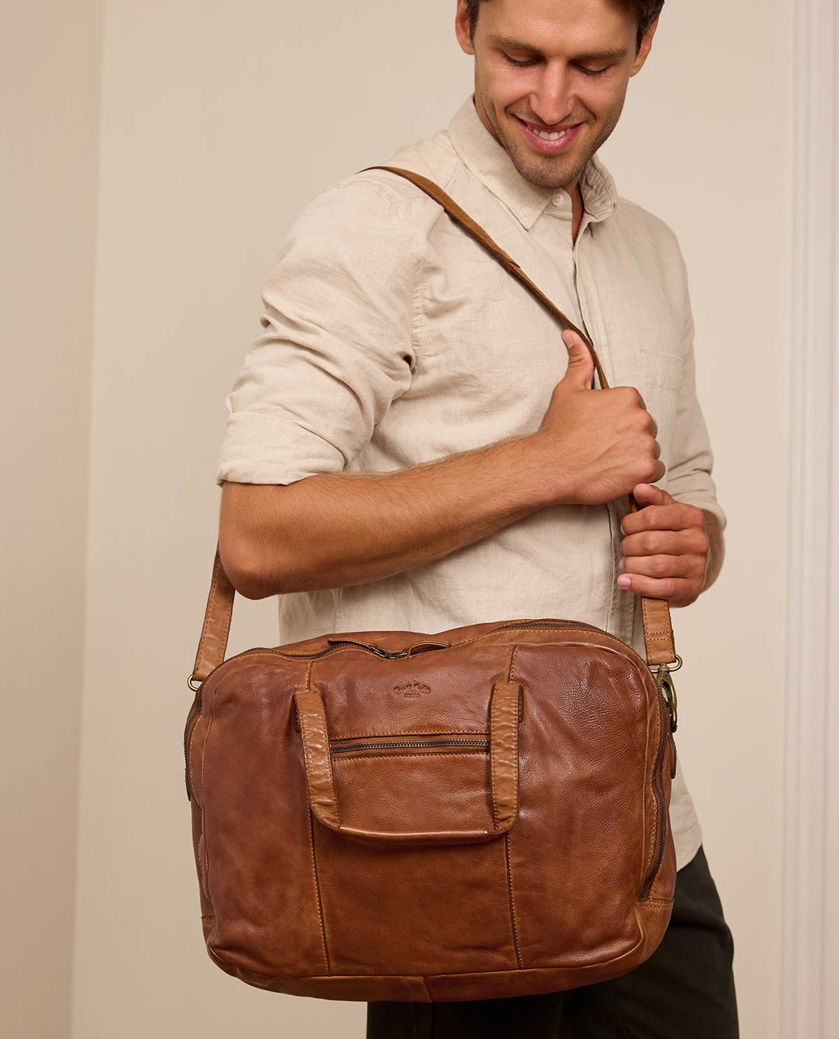 Our briefcase is made from high-quality leather. This soft yet sturdy material gives the bag an elegant vintage look and ensures it'll go the distance. Each bag is crafted by hand and will win you over with its unique grain and colour. This timeless design is the perfect accessory at the office, in meetings, or on business trips.