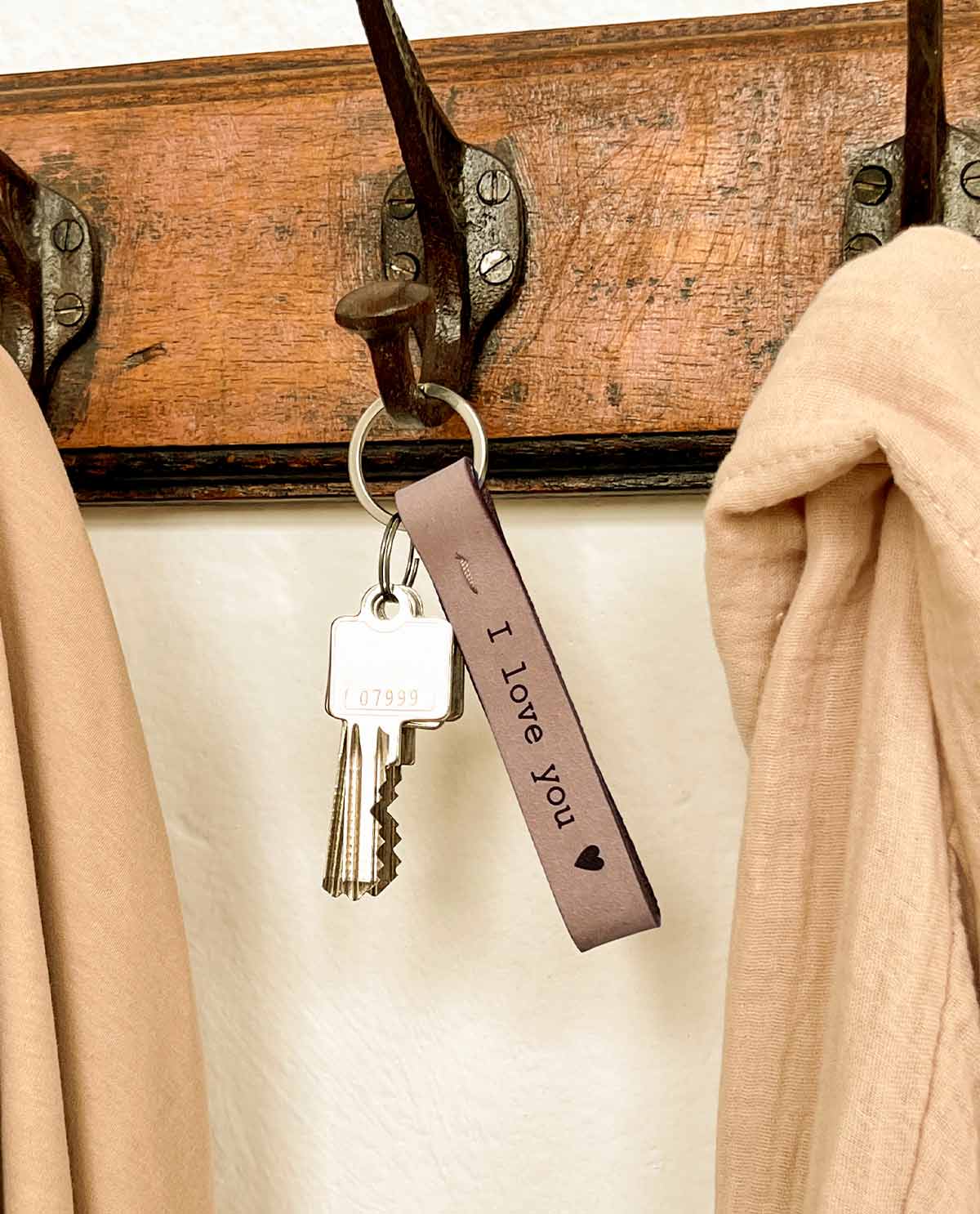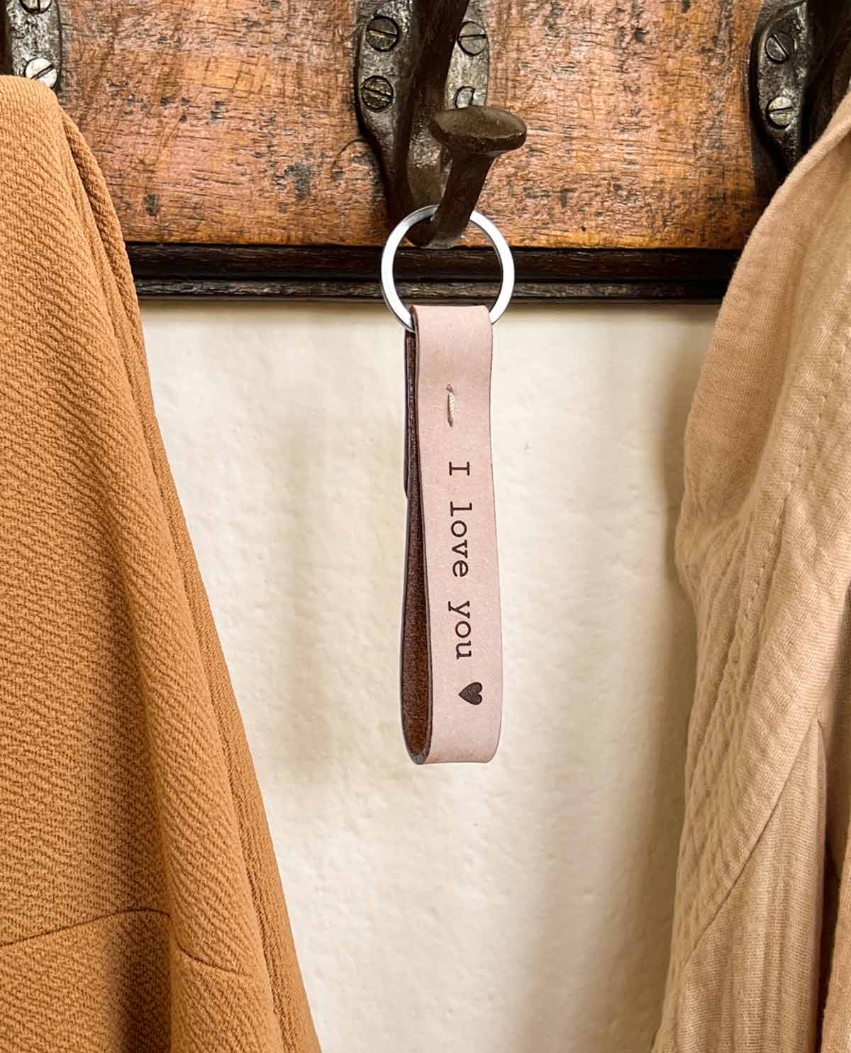 Schlüsselanhänger "I love you" Lederanhänger Schlüsselring Hellbraun Leder