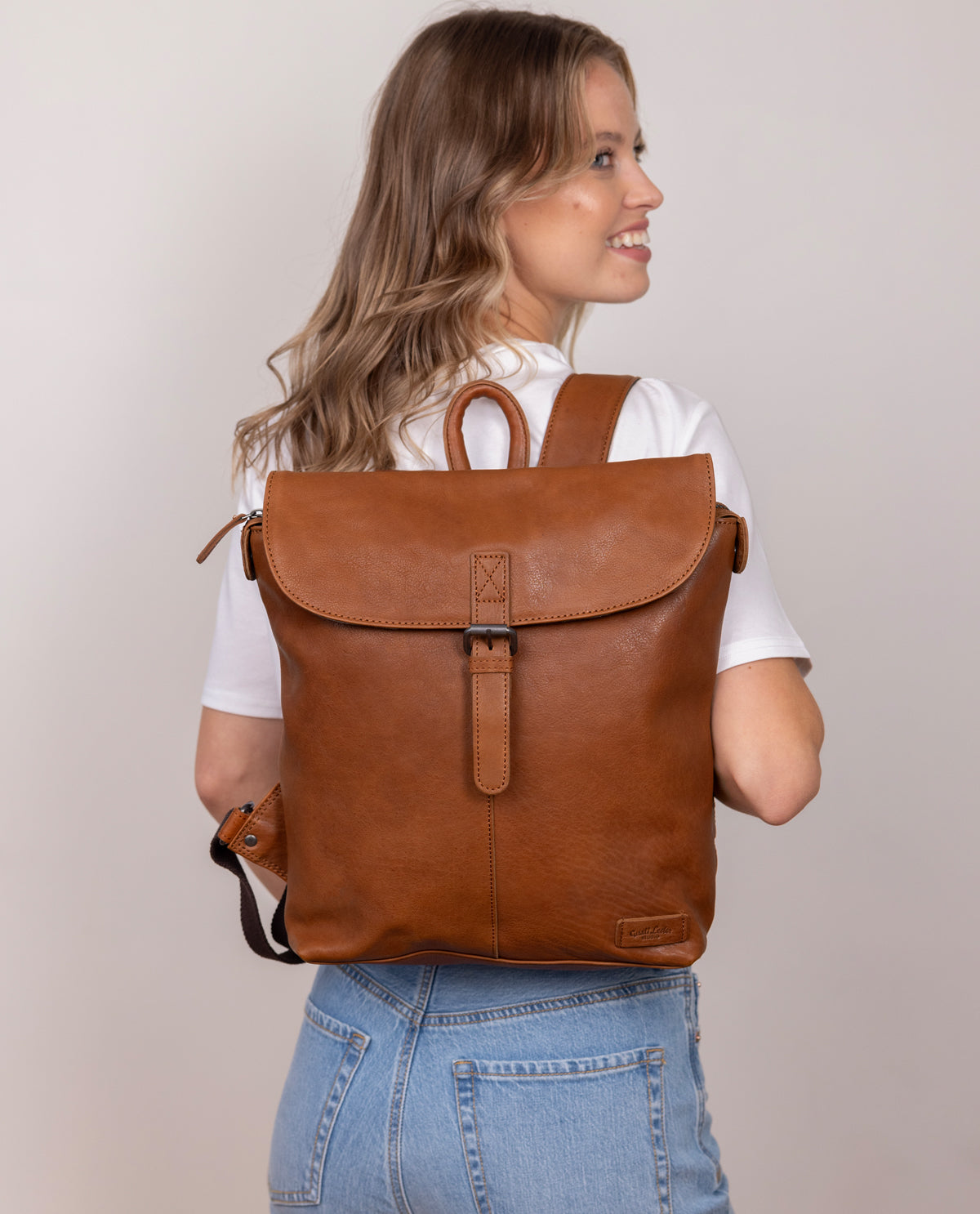 “Kieran” won’t just charm you with its high-quality full-grain leather look, but with his ingenious design too. This 100% leather backpack has more than enough space for all of your essentials and is super comfortable to wear, thanks to its wide full-grain leather straps. The main compartment has a double fastening system; the long zip and thorn-buckle-style snap lock make sure everything stays safe and secure. The extra zipped pocket on the back of the bag provides you with space to keep your valuables hidden and safe from sticky fingers. Add a timeless touch to your wardrobe with “Kieran”.