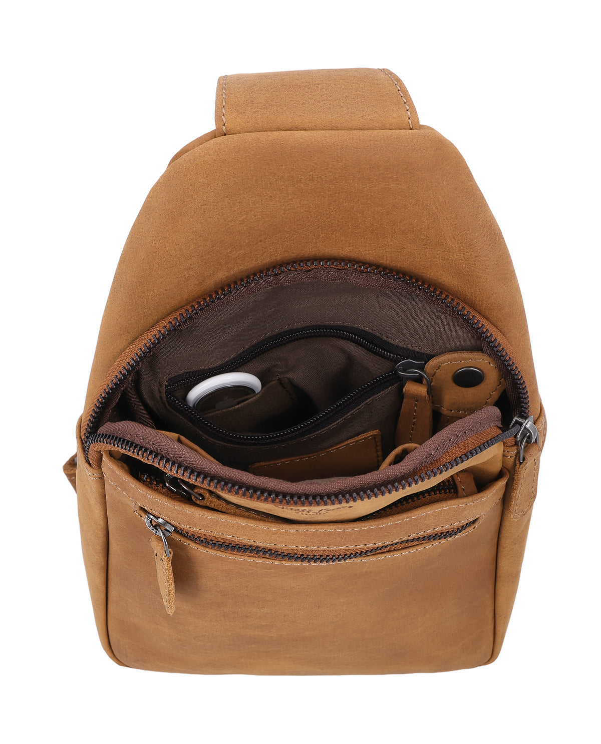 The Azon leather bag is a versatile sling pack for men that easily adapts to your everyday life. Whether worn as a belt bag, across the shoulder, or as a compact shoulder backpack, Azon remains flexible and comfortable no matter how you travel. The brown leather gives the bag a natural, urban look and makes it a reliable companion for city life, travel, or spontaneous adventures. This leather bag combines freedom of movement with a clean, functional design.
