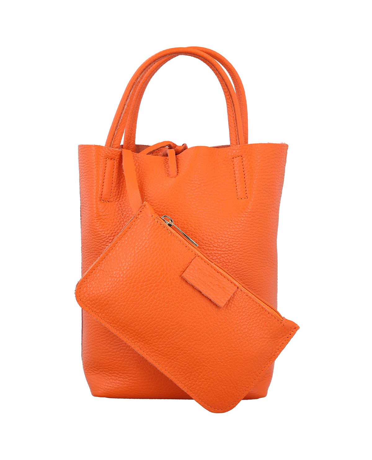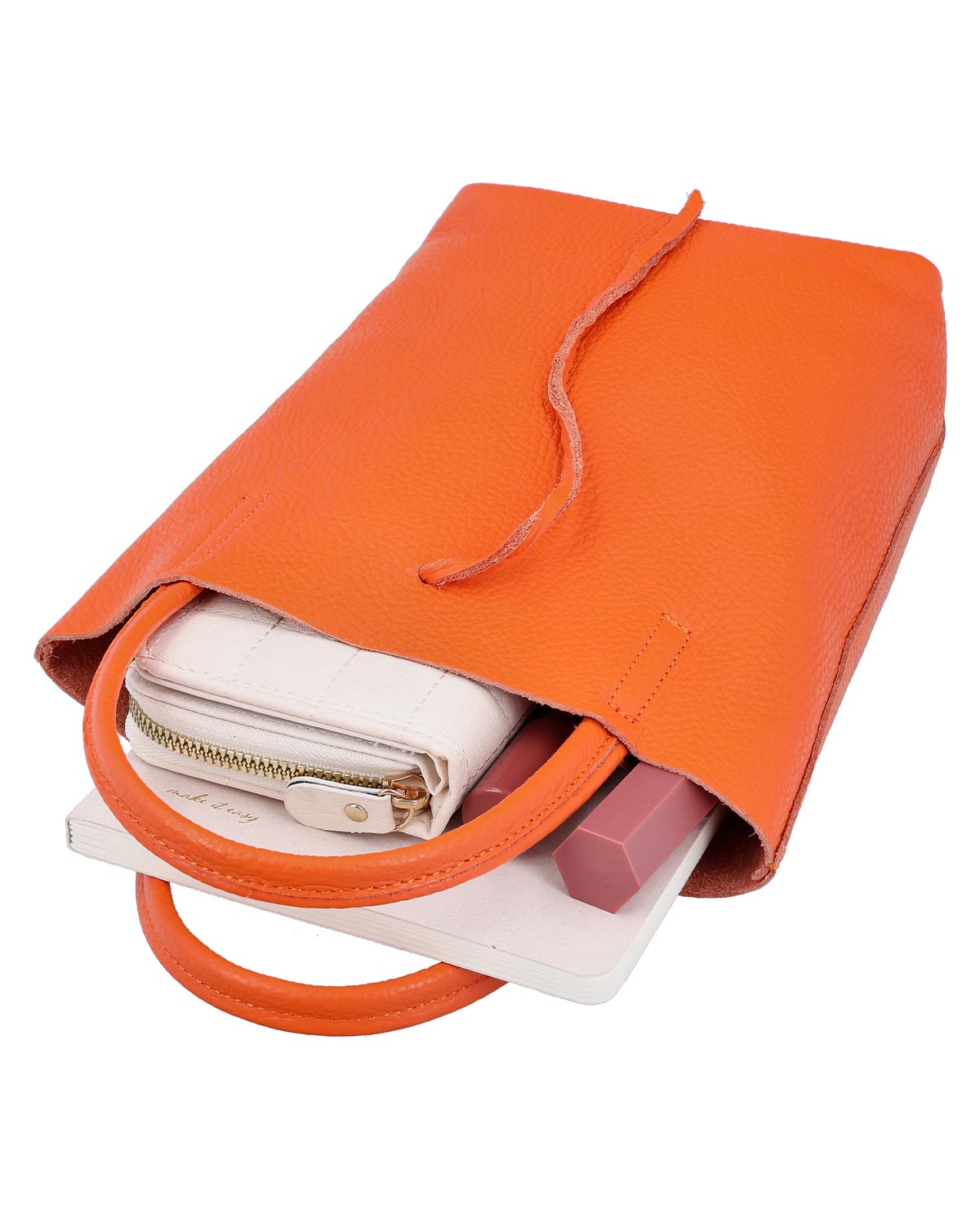 Crossbody bag leather bag shopper handbag women orange leather - Made in Italy