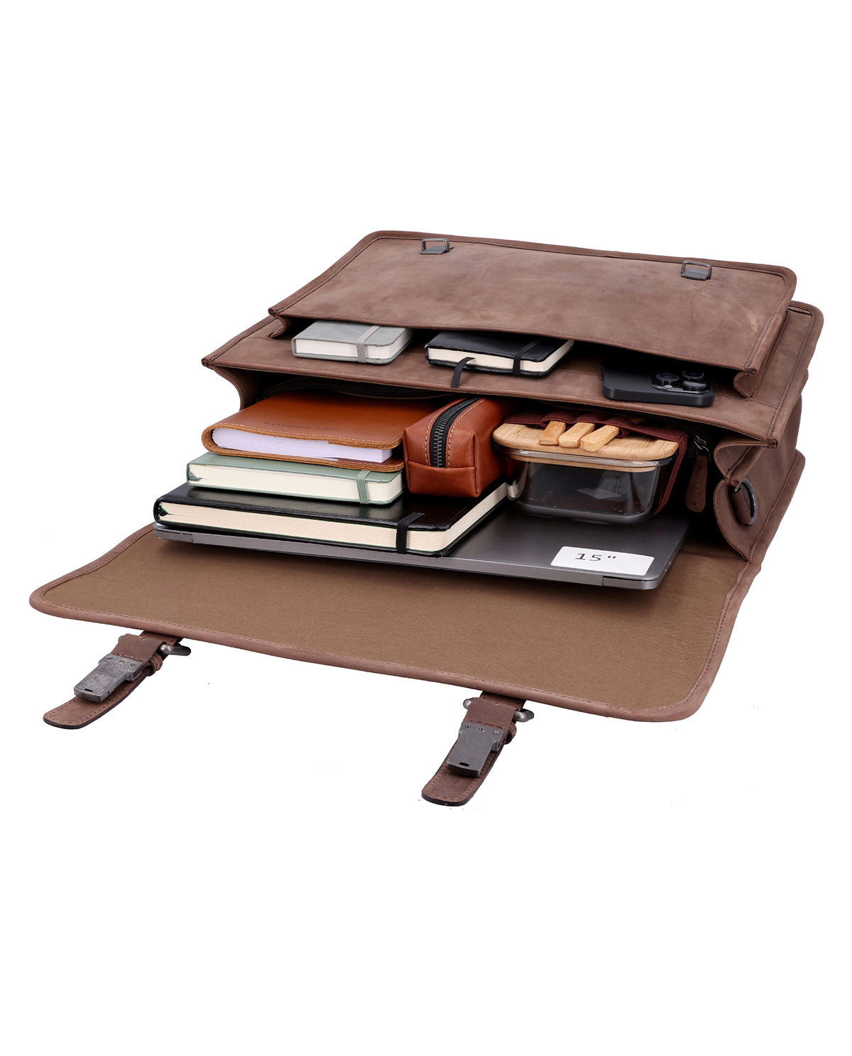 Without a doubt, "Elmar" has everything you expect from a leather shoulder bag: the classic look combined with a subtle finish – depending on the color, in a trendy used look or in timeless elegant smooth leather. This makes "Elmar" equally suitable for a casual workday as well as for the upcoming big business meeting. And for those who are still not convinced by "Elmar", this classic briefcase made of high-quality processed leather will impress at the latest with its enormous and generous space thanks to the numerous compartments.