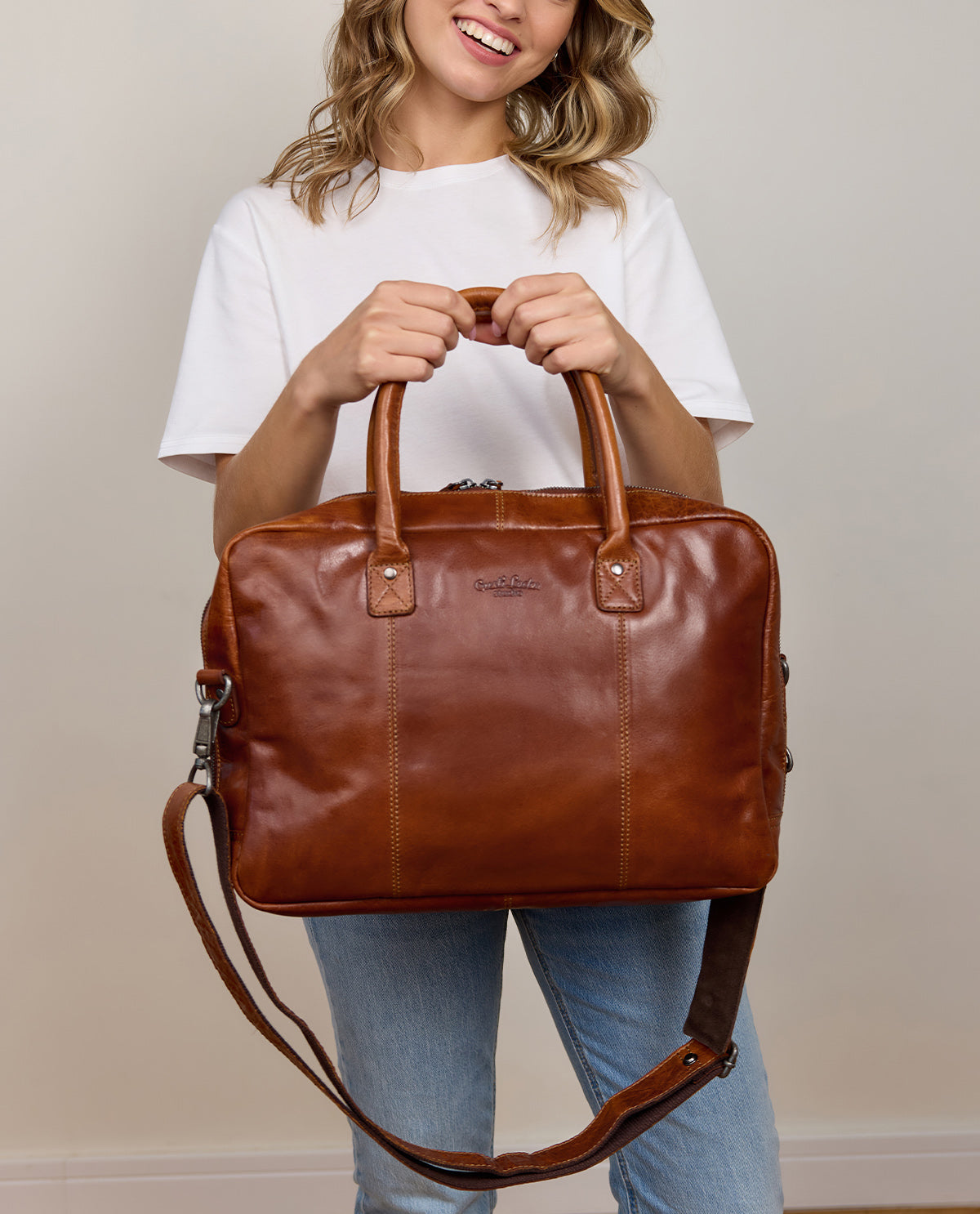 Our Gusti Leather briefcase is made from premium brown leather which gives it an authentic vintage look and means it'll last a lifetime. The high-quality material has been carefully processed to ensure this leather bag can withstand anything you throw at it.