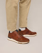 With "Ennio", you wear shoes that effortlessly bridge the gap between casual everyday life and a stylish appearance. The thoughtful design combines smooth leather with velvety suede elements, creating a sophisticated, modern look. The multi-part construction with visible seams emphasizes the craftsmanship and simultaneously guarantees durability. The rounded toe cap with a double leather layer of smooth leather and suede provides stability and visual depth, while the flat, wide cotton laces in brown add a stylish accent. The leather cover on the tongue with an embossed logo gives "Ennio" a high-quality finish.