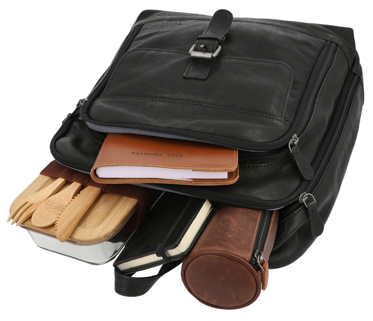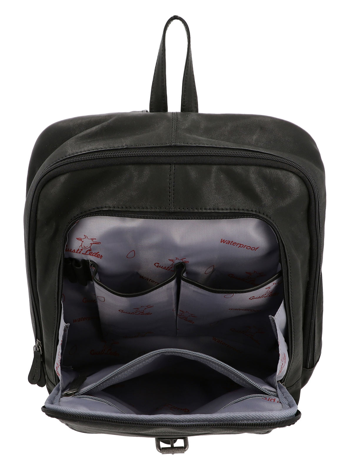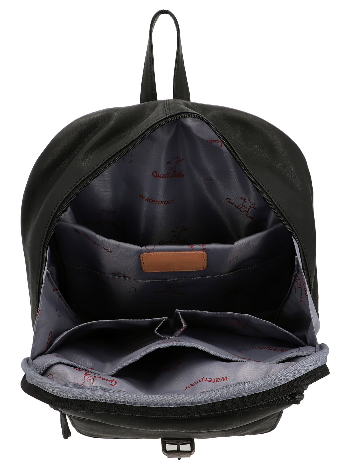 Whether you're heading to the gym, embarking on a world trip, working, or just going about your daily life, "Niki" won't let you down! The durable cowhide leather and the waterproof inner lining can withstand anything, making this modern leather backpack a practical yet stylish accessory. Five differently sized interior compartments provide space for everything you might need on the go, whether it's hiking boots and a water bottle or A4 documents and a 15.6-inch laptop. Everything is securely stored in the various compartments, preventing items from moving around. Two additional zippered pockets allow valuables to be safely stored, ensuring nothing gets lost. The wide straps make the backpack comfortable to wear and can be adjusted to fit you perfectly. Gusti values functionality as well as stylish vintage design, so "Niki" simply can't be beat!