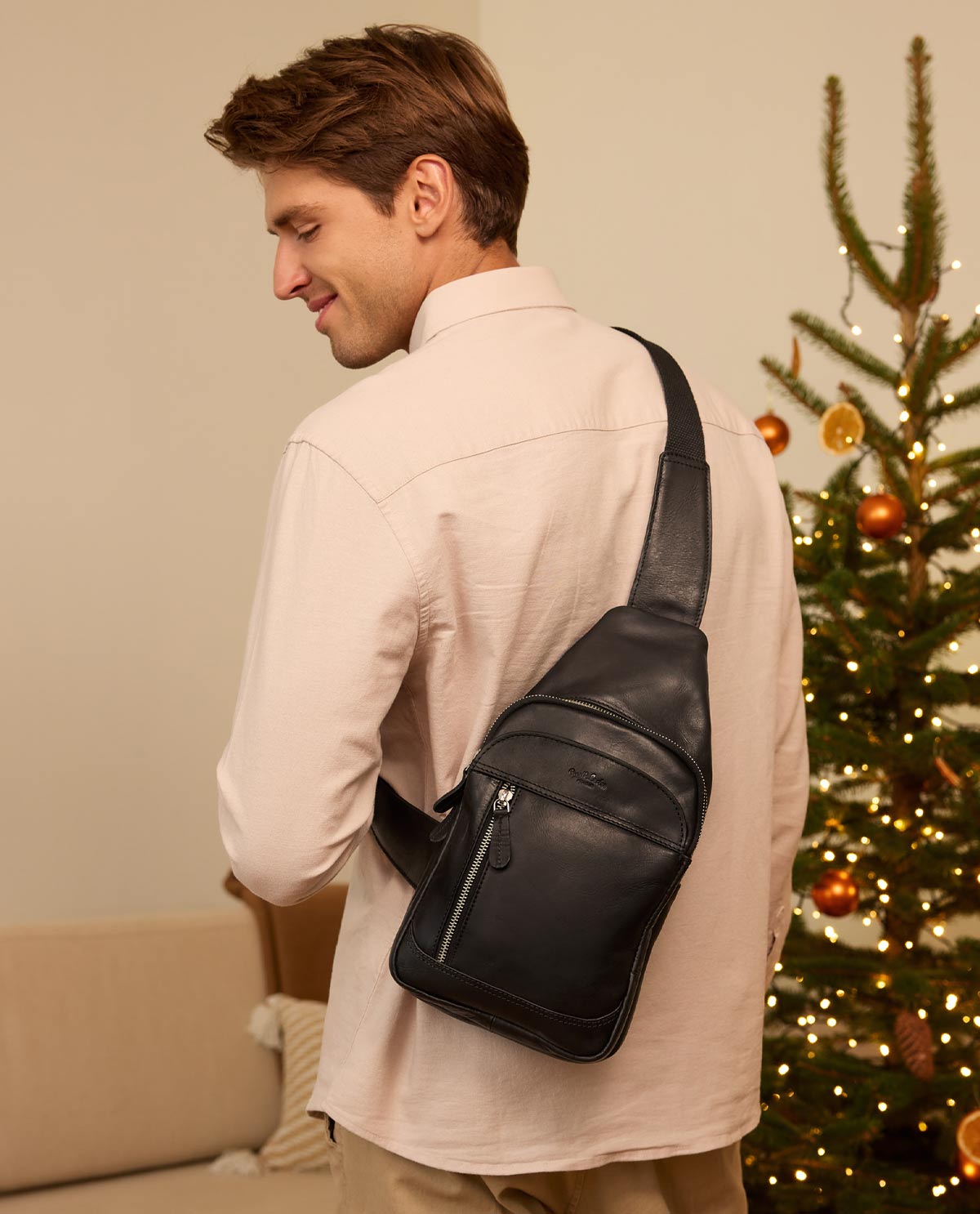 Vegetable tanned belt bag shoulder backpack bum bag leather bag sling pack black leather