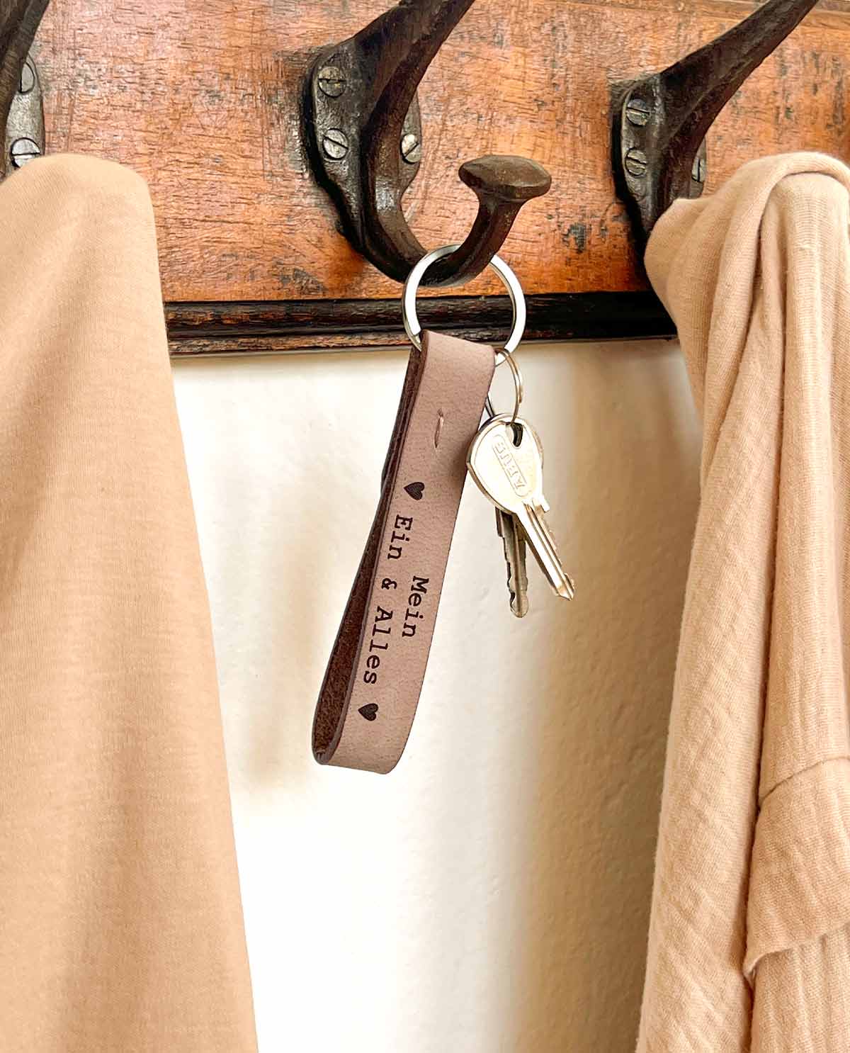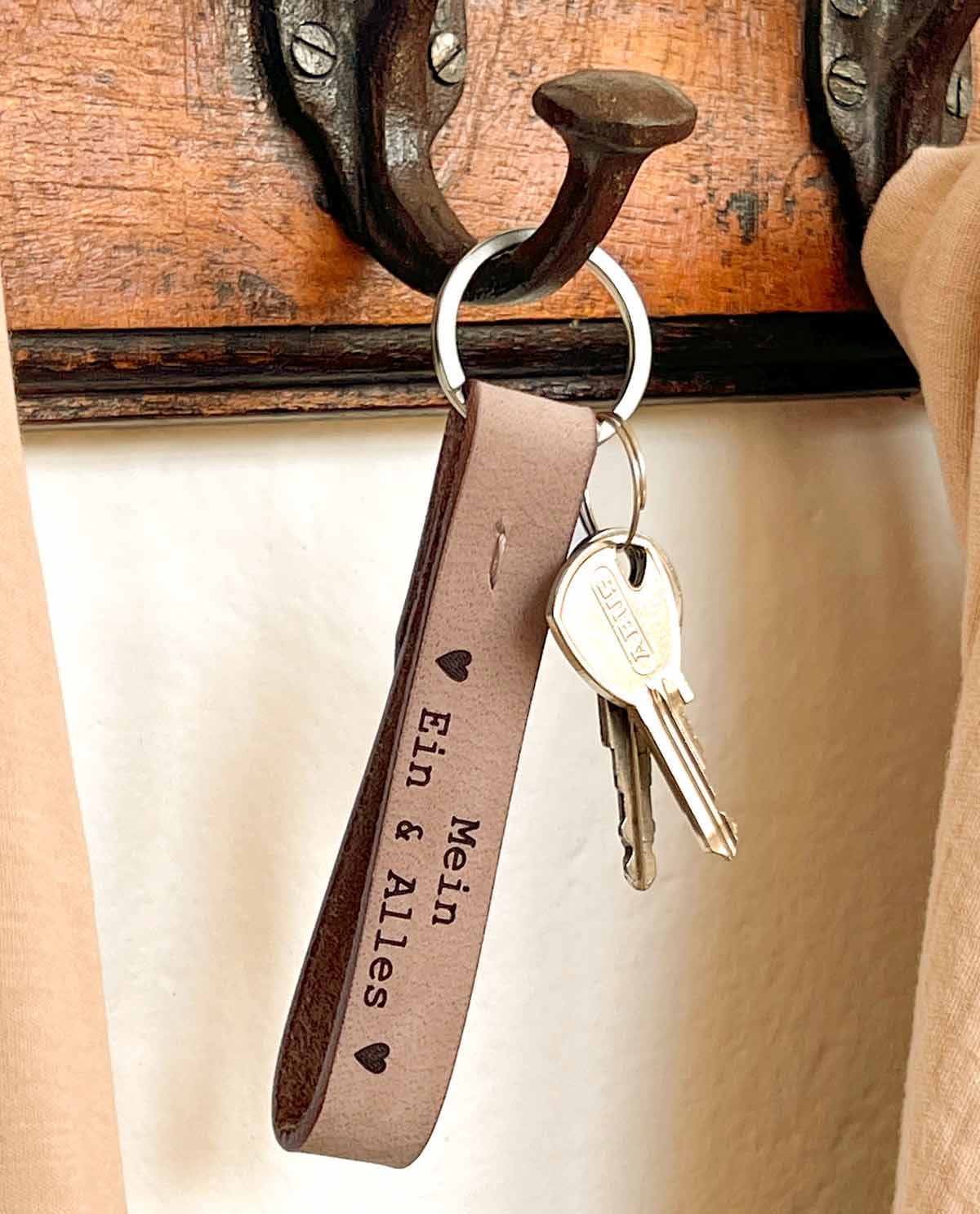 Unser Schlüsselanhänger "Aaron" ist das ideale Geschenk für Deine Lieblingsmenschen. Gefertigt aus 100% echtem Büffelleder ist der Schlüsselanhänger nicht nur sehr stabil und zugleich weich, sondern erstrahlt auch im angesagten Vintage-Look. Ob für Wohnungs-, Garten- oder Arbeitsschlüssel – mit "Aaron" machen alle Schlüssel eine gute Figur und sind im Handumdrehen in Deiner Handtasche oder Deinem Rucksack griffbereit. Durch die Gravur erhält Dein Freund oder Deine Freundin nicht nur ein praktisches, sondern auch ein ganz persönliches Geschenk.