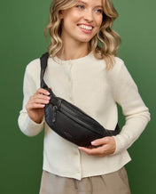 Vores bæltetaske "Spencer" gør ikke meget væsen af sig, men overbeviser med sit reducerede urolige look, sin kvalitet og sin funktionalitet. Det robuste og kvalitativt højtforarbejdede koskind giver bæltetasken den nødvendige formstabilitet, mens dens talrige lynlåslommer giver rigelig plads til dine nødvendigheder, uden hvilke du simpelthen ville være fortabt på alle festivaler eller bare i byens natlige mylder. Den erfarne festivalgænger og den passionerede koncertbesøgende vil med sikkerhed værdsætte "Spencer"'s kvaliteter. For pung, smartphone og nøgler passer nemt ind - og meget mere. Den længdejusterbare bælte på denne bum bag er desuden udstyret med en stabil snaplås, så du kan bære "Spencer" enten omkring hofterne eller som en crossbody taske. Efter mottoet: "Spencer" er ukompliceret. "Spencer" er praktisk. "Spencer" er bare god.