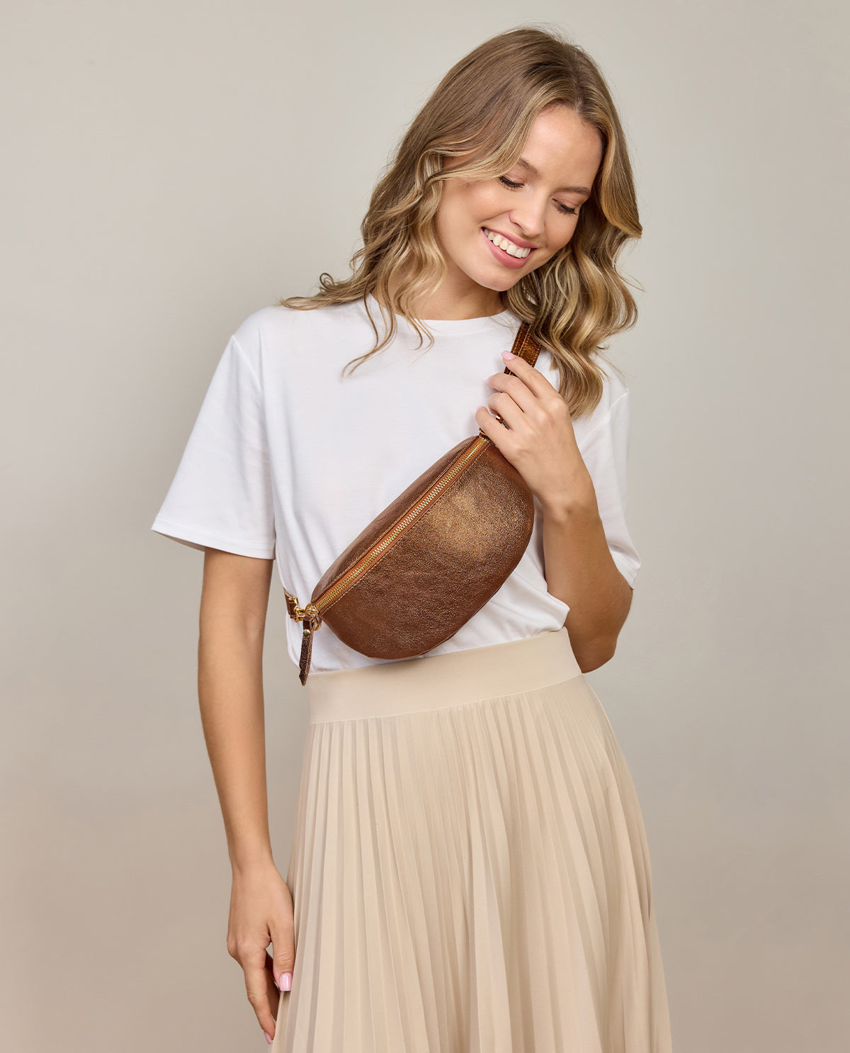 Bæltetaske mavetaske fanny pack crossbody taske dame brun laklæder - Made in Italy