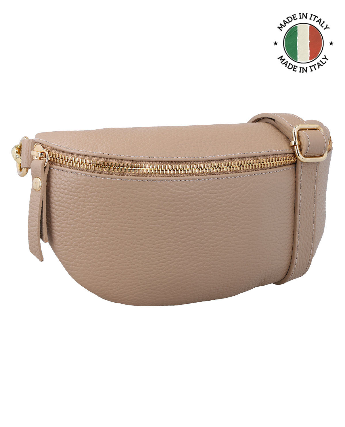 "Brinja" skuldertaske imponerer med sit elegante design og høje funktionalitet. Med den markante, halvrunde silhuet og den fuldstændige lynlås langs den øverste kant tilbyder den ikke kun tilstrækkelig plads til dine nødvendigheder, men også sikkerhed for alle dine personlige ejendele. Det højkvalitets læder giver den et fornemt udseende, der passer perfekt ind i din moderne hverdag. Indeni finder du også det fint præget "Made in Italy"-logo, der imponerende understreger taskens oprindelse og kvalitet.