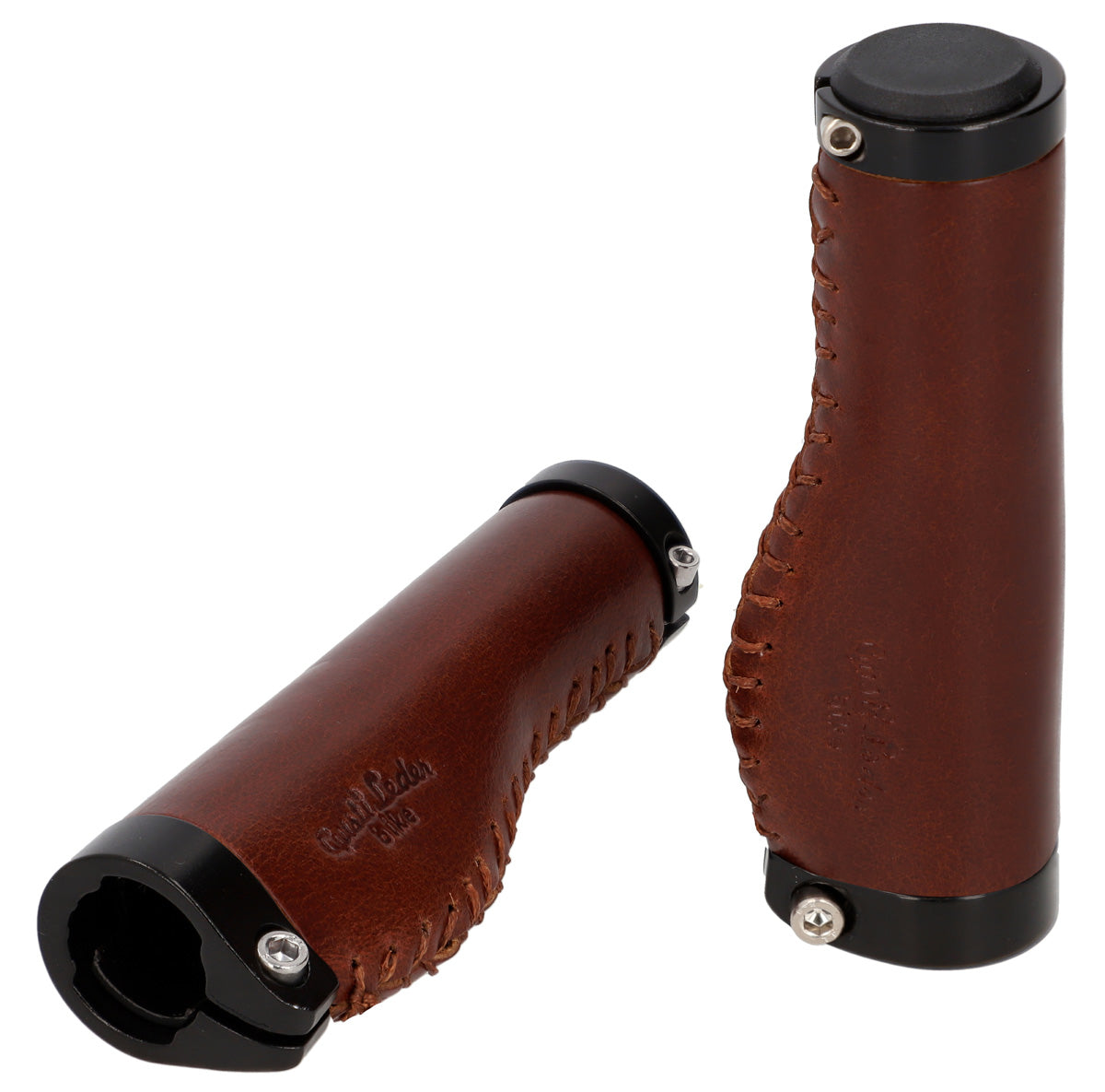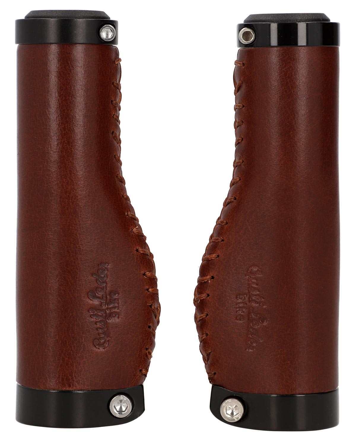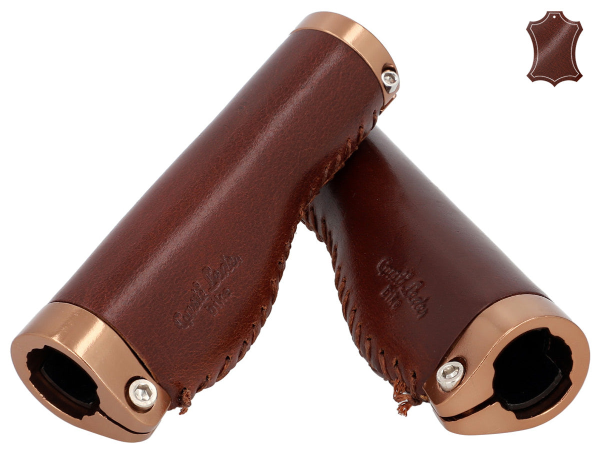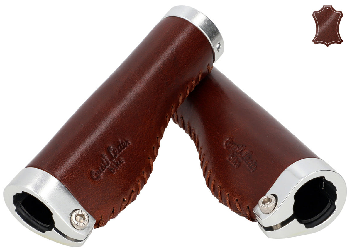 De læderbeklædte styrhåndtag "Phil A." passer visuelt lige så godt til en trendy single-speed cykel som til en klassisk hollandsk cykel og er nemme at montere. Deres højkvalitets materialeblanding af farvet aluminium og 100% ægte læder sikrer fremragende greb og en konstant god styring. Samtidig tilpasser de sig ideelt til anatomi af dine hænder, dæmper stød og vibrationer og øger dermed grebssikkerheden. Efter en kort indkøringsperiode vil du ikke længere kunne undvære den mærkbare komfort og den behagelige følelse af disse håndtag.
