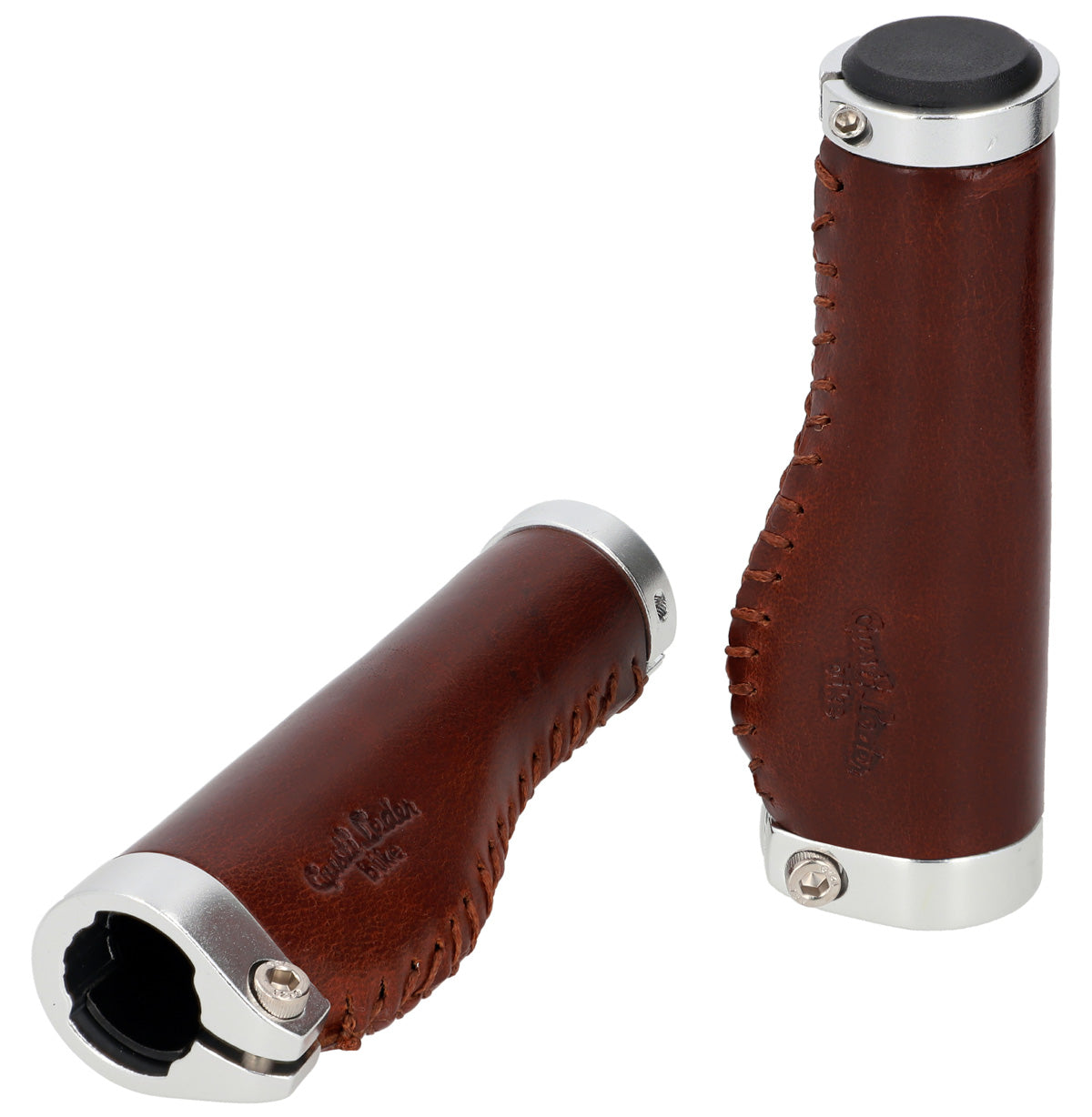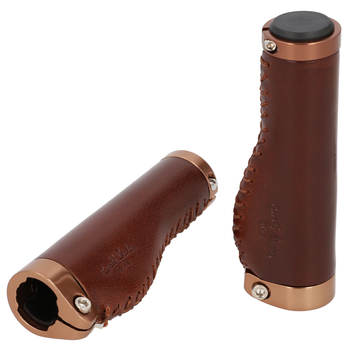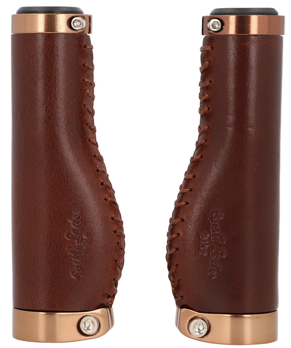 De læderbeklædte styrhåndtag "Phil A." passer visuelt lige så godt til en trendy single-speed cykel som til en klassisk hollandsk cykel og er nemme at montere. Deres højkvalitets materialeblanding af farvet aluminium og 100% ægte læder sikrer fremragende greb og en konstant god styring. Samtidig tilpasser de sig ideelt til anatomi af dine hænder, dæmper stød og vibrationer og øger dermed grebssikkerheden. Efter en kort indkøringsperiode vil du ikke længere kunne undvære den mærkbare komfort og den behagelige følelse af disse håndtag.