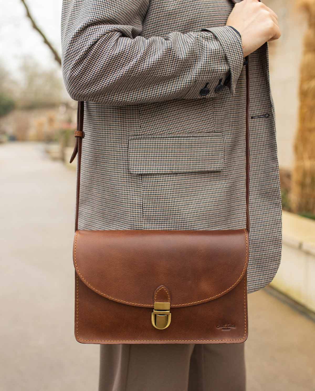 Håndtaske skuldertaske lædertaske dame brun ægte læder