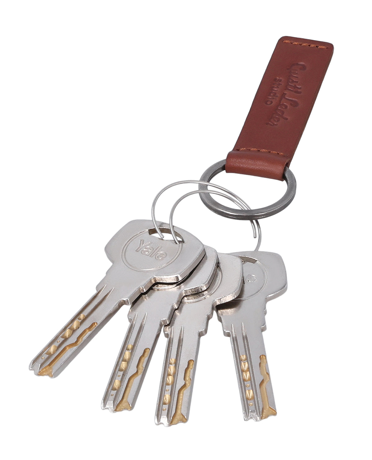 Nøglering læderaccessory dame herre lysebrun læder