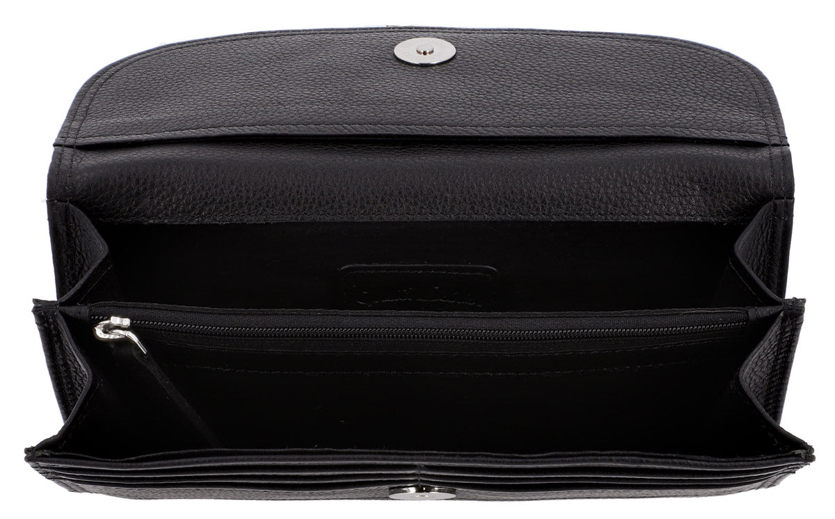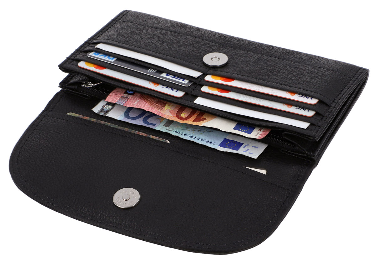 Aldrig mere besværligt at sortere og omarrangere: Takket være "Emma"! For denne rummelige pung, der i nødstilfælde også kan bruges som clutch, har masser af plads til små og store mønter, loyalitets- og kreditkort, ID-kort, kørekort og meget mere. Med "Emma" har du seks kortlommer til rådighed, hvor du kan opbevare mindst lige så mange kort. Bag kortlommerne er der to store rum til sedler, i midten af hvilke der er indsat et rum med lynlås, hvor du nemt kan opbevare alle dine mønter. En rummelig, afrundet kuvert, hvor der også er integreret endnu et rum, og som er forsynet med en magnetknap til sikker lukning, hjælper dig med at holde hele indholdet af din pung samlet, uden at noget går tabt undervejs, eller at indholdet af din pung blot spredes i din taske eller rygsæk. Det slidstærke og samtidig bløde oksekind tilpasser sig uden problemer til din tegnebog, uden at miste formen, og giver desuden "Emma" sin uforlignelige vintage-charme.