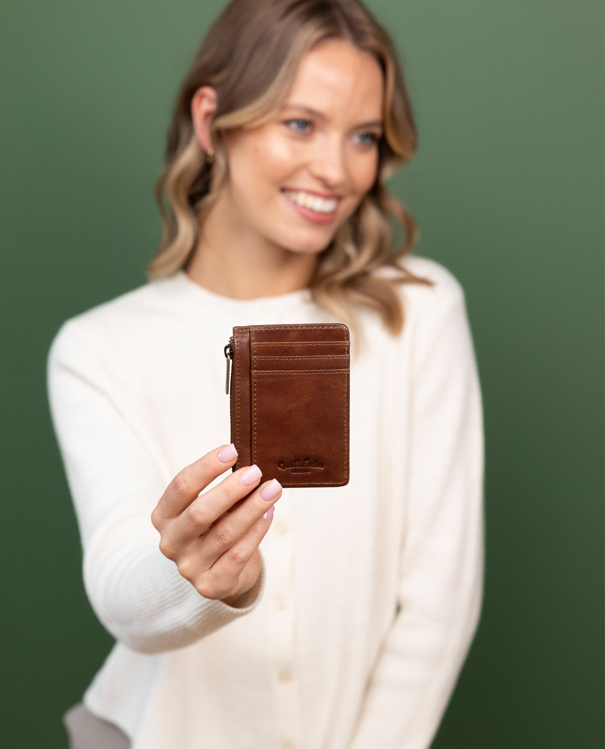 "Arlan" pungen er mere end bare et praktisk tilbehør – det er en stilfuld følgesvend, der organiserer dit liv. Lavet af høj kvalitet brunt læder, imponerer den med sin enkle elegance og fremragende håndværk. Den ædle brune farve og den fine tekstur af læderet gør den til en tidløs klassiker, der efterlader et varigt indtryk både i lommen og i hånden.