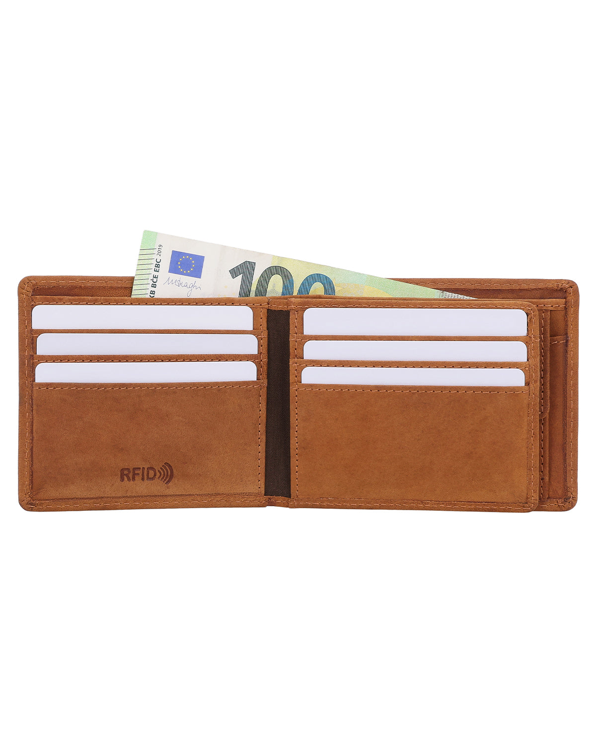 Vigtigt: I denne variant er "Foster" udstyret med ekstra RFID-beskyttelse. Hvordan fungerer RFID-blokeringen? En RFID-beskyttelseslomme er syet ind i pungen og forstyrrer signalet fra læsere. Når tegnebogen er lukket, beskytter den alle kortene indeni. Således er dine pengekort ekstra beskyttet, og uautoriserede personer kan ikke få adgang til dine data. For dig betyder det: ekstra sikkerhed!