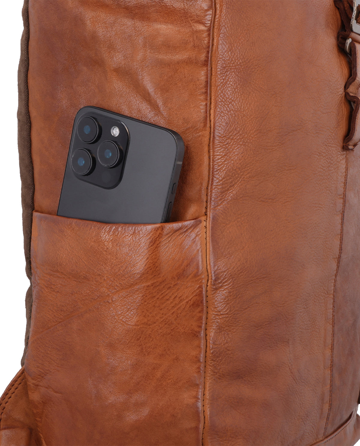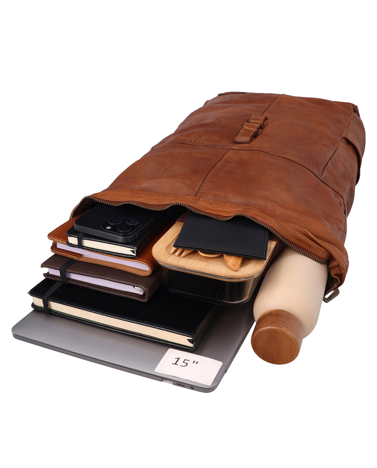 Uanset om det er til skole, universitet eller arbejde – vores rolltop-rygsæk „Bendik“ passer altid. Inspireret af Berlin overbeviser den med fleksibilitet, høj bærekomfort og generøs plads. Denne klassisk-robuste daypack i honningbrunt læder skiller sig især ud med sit trendy rolltop – et look, man simpelthen ikke kan komme udenom i øjeblikket.