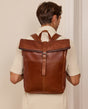 "Henning" er en mellemstor rulletop-rygsæk i slidstærkt Bøffellæder, der med sit smalle snit er som skabt til at klare sig i storbyens travlhed eller i den trange S-bane i myldretiden. Takket være den gennemtænkte indretning har den nemlig plads nok til, at du uden problemer kan opbevare dine A4-dokumenter, din 15"-bærbare computer, en hel håndfuld bøger og en stor drikkedunk i det rummelige hovedrum, mens et ekstra stiklomme og et indvendigt lynlåslomme hjælper dig med at strukturere dine ejendele, så alt har sin faste plads. Og skulle der alligevel ske et uheld, beskytter det lyse inderfor af vandafvisende polycotton læderet på din rygsæk mod fugt og pletter. Det udvendige lynlåslomme på siden giver dig plads til alle de ting, du har brug for i løbet af dagen, mens den polstrede rygdel og indersiden af de brede skulderstropper er beklædt med brun Canvas, hvilket giver dig ekstra bærekomfort.