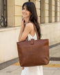 Shopper håndtaske skuldertaske computertaske dame brun læder