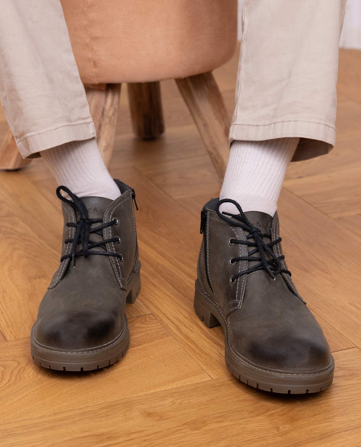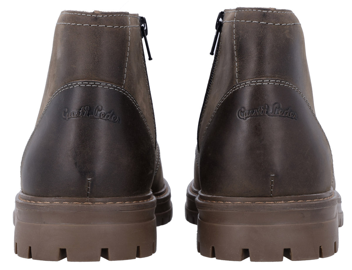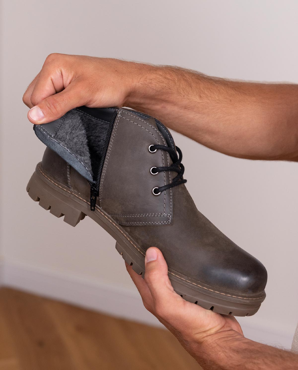Med "Peyman" kombinerer du stil og komfort perfekt – selv på årets koldeste dage. Det højkvalitets okselæder med mat, grå overflade og kontrasterende hvide syninger giver skoene et moderne og samtidig klassisk look. Snørelukningen kombineret med en sidelukning med lynlås sikrer maksimal komfort og gør det nemt at tage dem af og på. Det dæmpet prægede Gusti Læder logo på hælen understreger den fornemme forarbejdning og den tidløse stil af disse vinterstøvler, som pålideligt ledsager dig gennem sne, regn og kulde.
