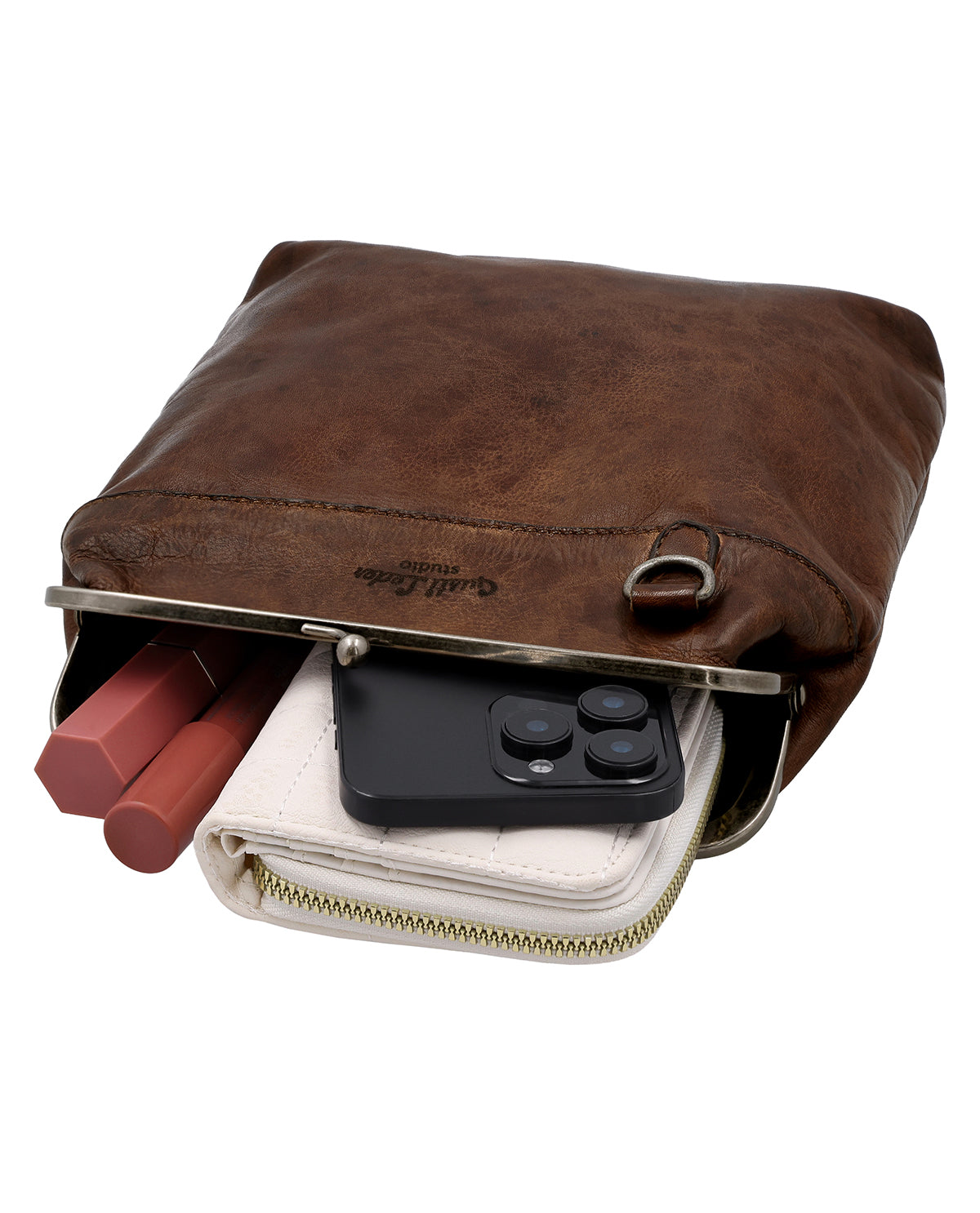 "Karlotta" kombinerer diskret raffinement med gennemtænkt funktionalitet og bliver dermed en pålidelig ledsager i din hverdag. Fremstillet af kromfrit garvet læder overbeviser med sin smidige haptik og moderne design. Den praktiske tryklås giver dig mulighed for hurtig åbning og lukning, mens justerbare og aftagelige bæreremme Giver dig maksimal fleksibilitet – enten som en elegant skuldertaske eller båret på tværs for et afslappet look. En diskret integreret AirTag-rum giver dig ekstra sikkerhed på farten.